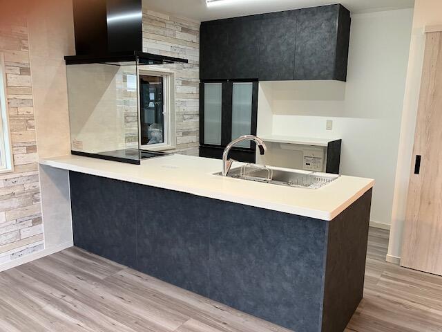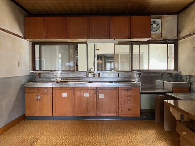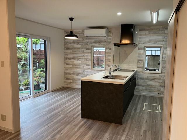 独立したダイニングキッチンに続く6帖の和室さらにお庭に面した広縁という間取りのO様邸を広々ワンルームにリフォームしました。 対面型キッチンで大きな窓から緑豊かなお庭を眺めながらお料理を楽しむことができ、背面の収納も食器類・家電商品が1つにまとまり動線もスムーズに。 断熱サッシや壁断熱材を入れて1年中快適に過ごせます。