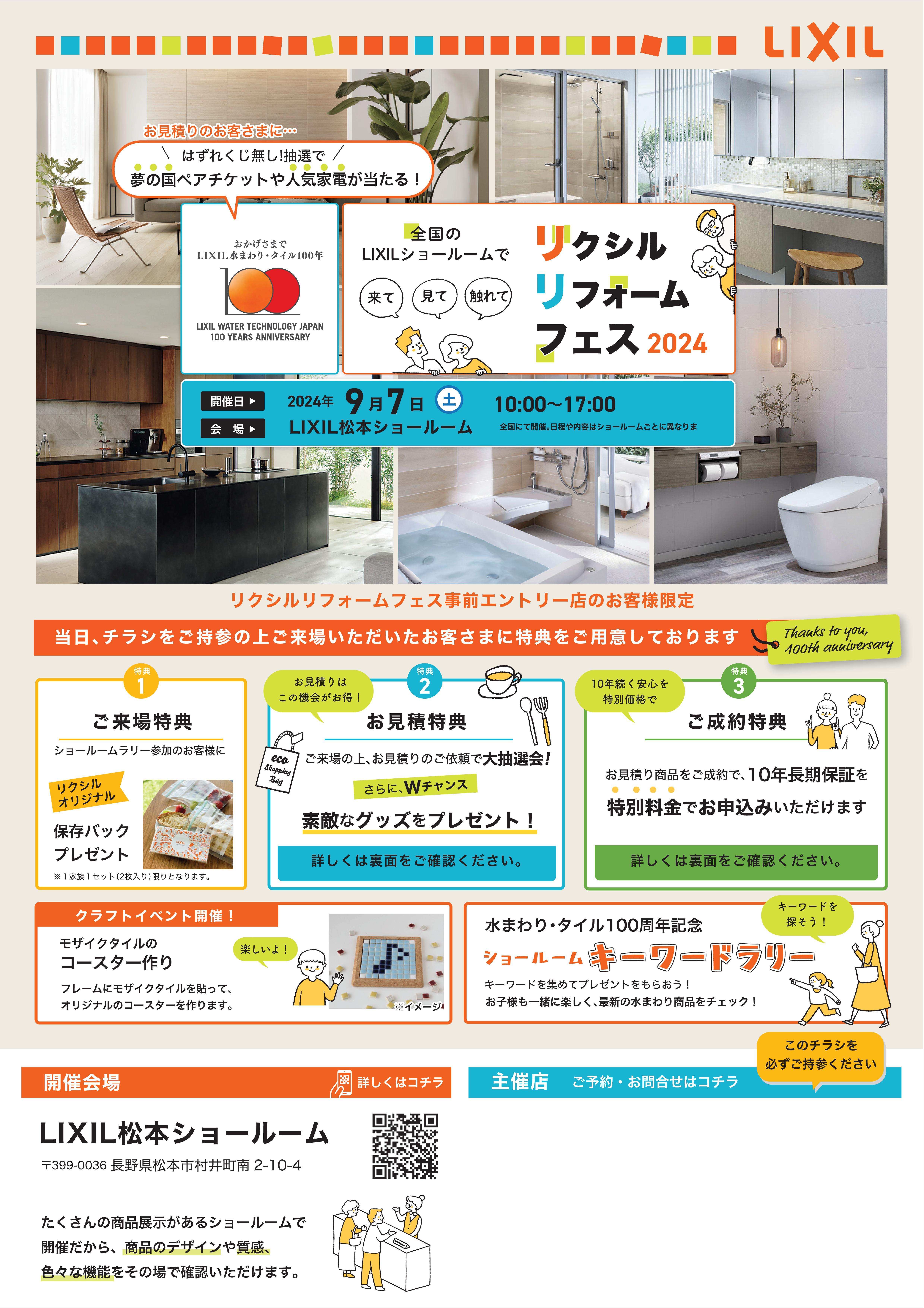 LIXIL水回り・タイル100年を記念して「リクシルリフォームフェス2024」を開催します。