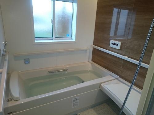 ユニットバスの工期は約7~10日。お風呂は出来たものを組み込むのではなくて、パーツを現場で組み立てていきます(施行例写真ご覧ください)。お風呂は危険がいっぱいなので、高齢者にも優しい安全な設備として、手摺や出入り口のバリアフリーをお勧めしています。ユニットバスにすることであたたかくもなり、お風呂に入ることが楽しくなります。