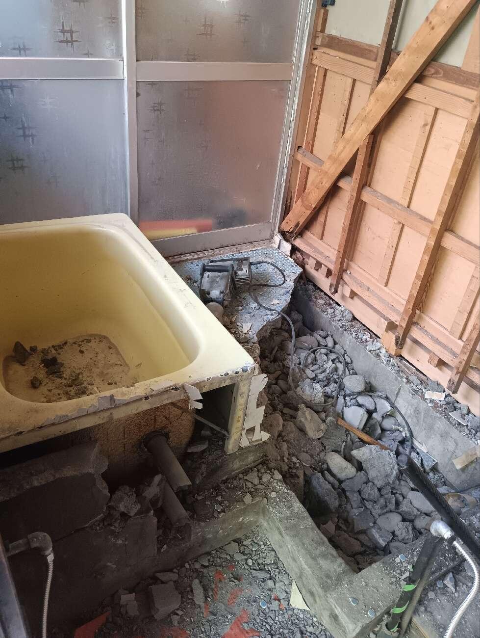 工事は、先ず既存の浴室と浴槽を解体撤去を行います。