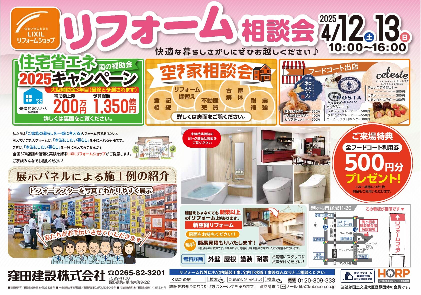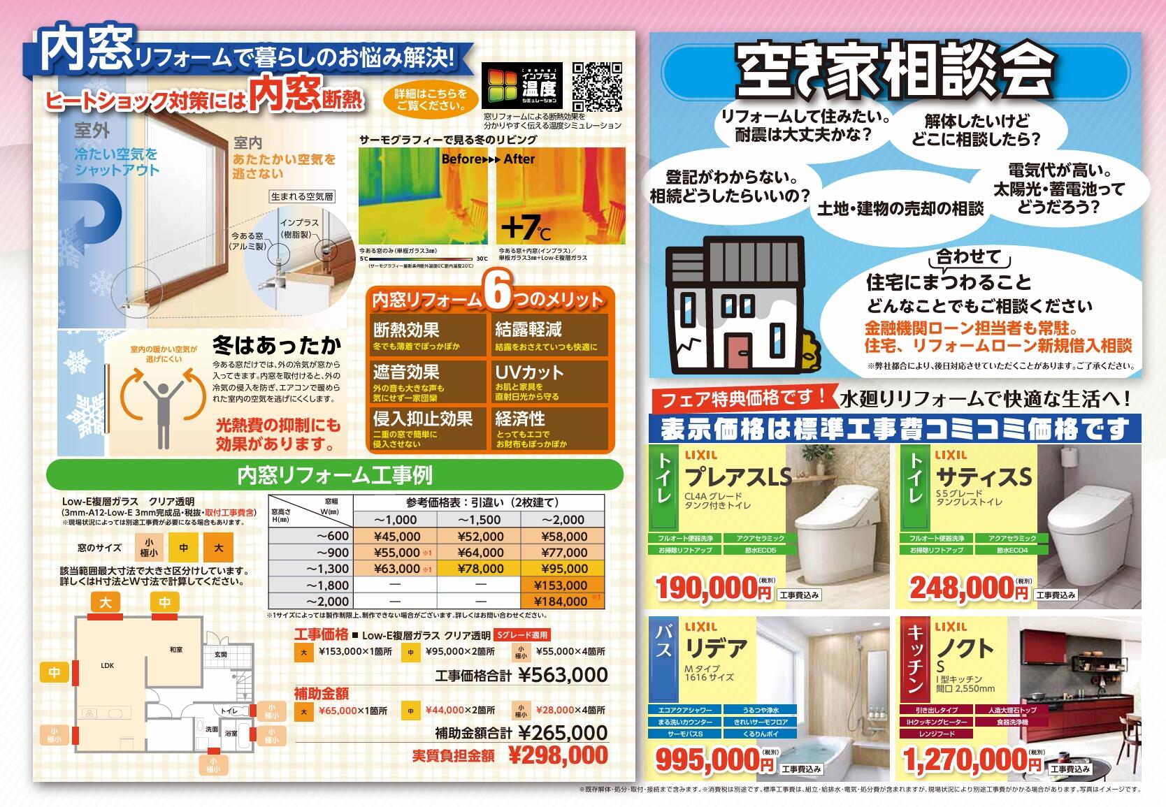 今回は内窓設置やキッチンなどのリフォーム相談に加え、「空き家相談会」も行います。