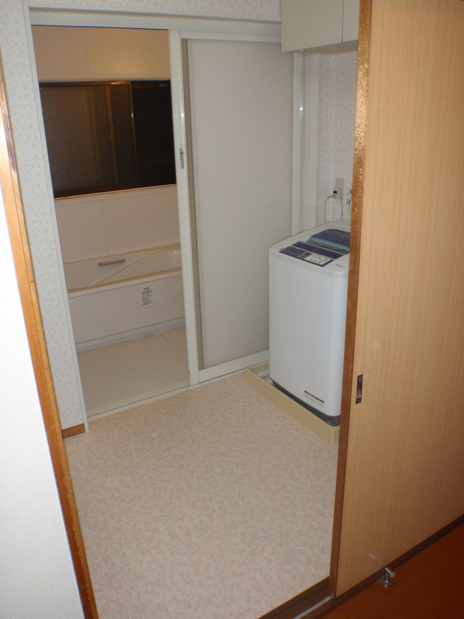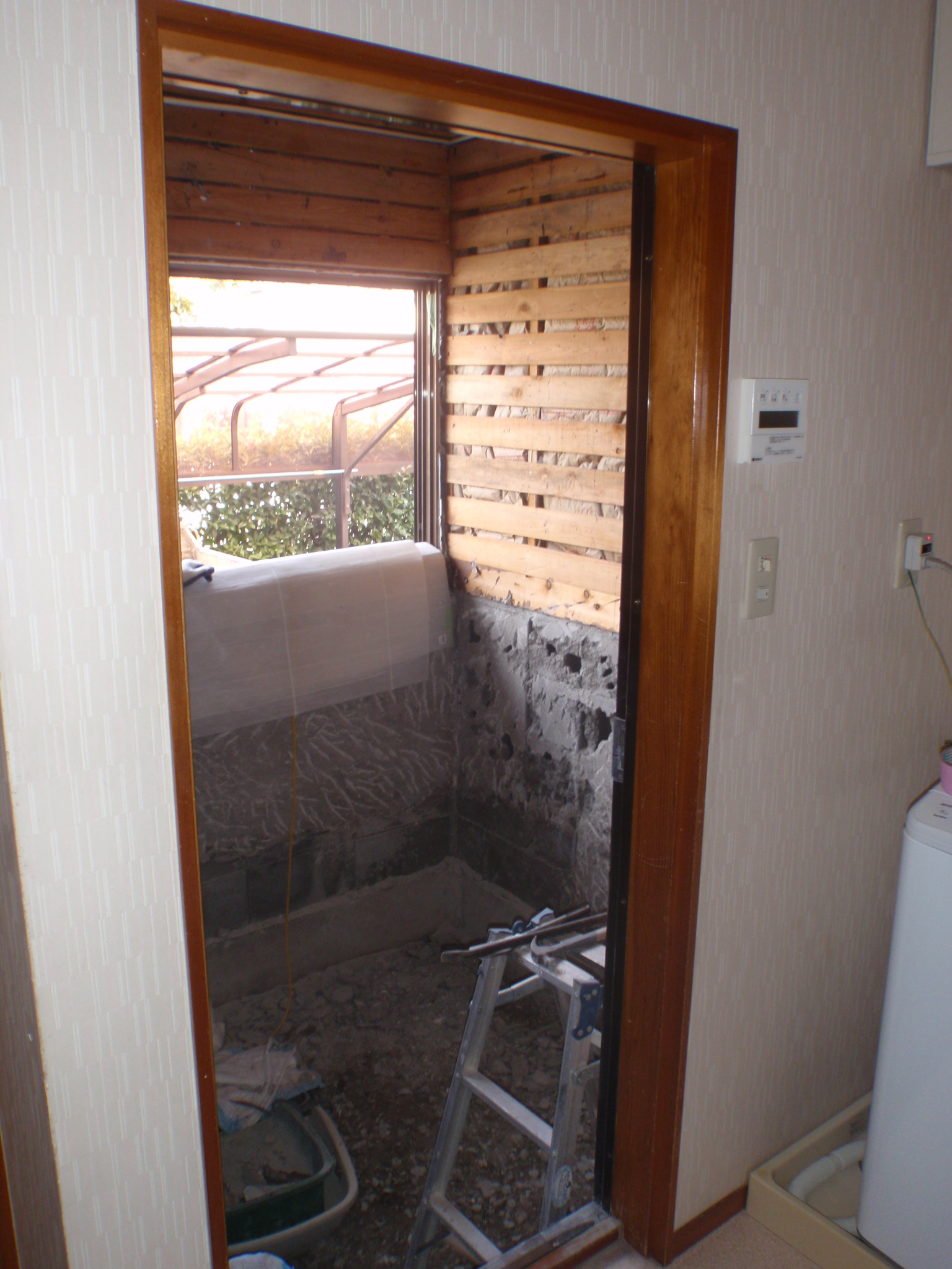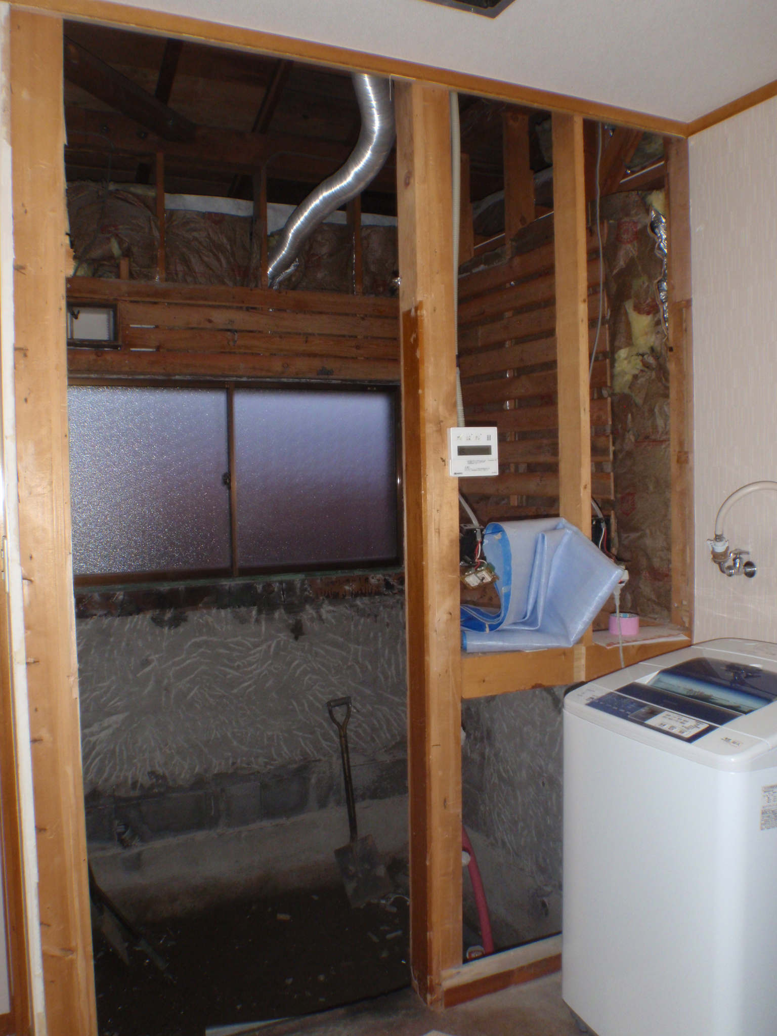 新規浴室は入口が引き違い戸のため、浴室と脱衣場の間の壁も撤去しました。