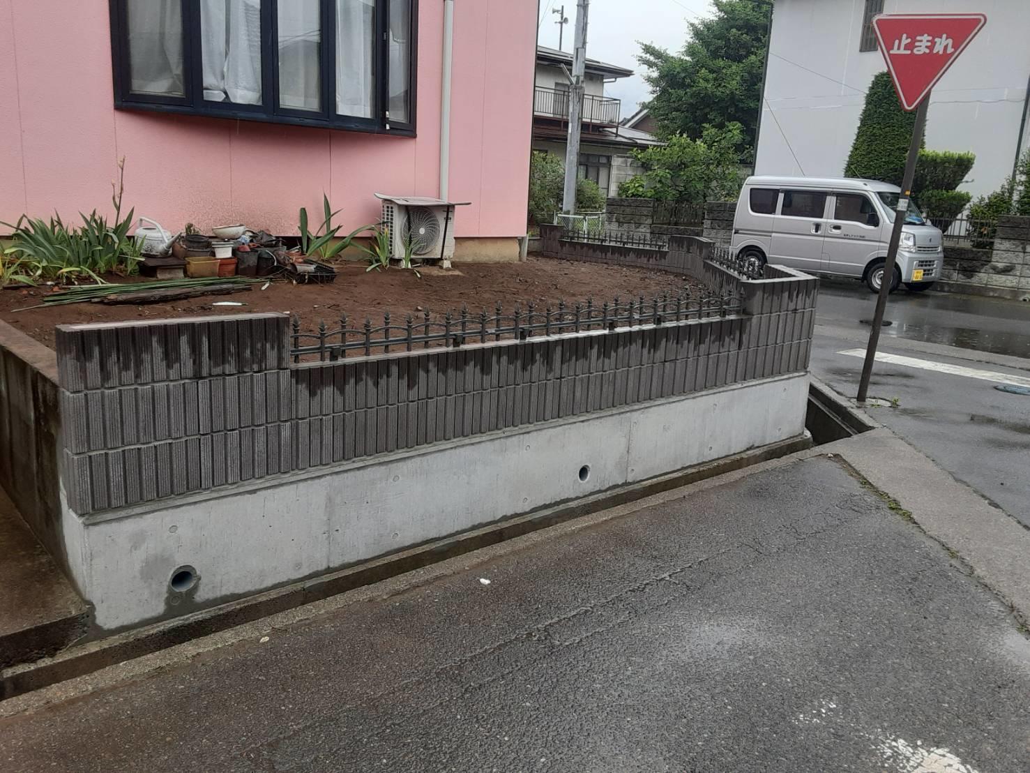 土留めが崩れてしまい、どうしようかと考えていたところ担当の方からお話をいただきお願いしました。 家の壁がピンクなので合わせ方がどうなるかと不安でしたが、見事にマッチさせたフェンスにしていただき、近所の方から褒められるようになりました。 本当にありがとうございました。