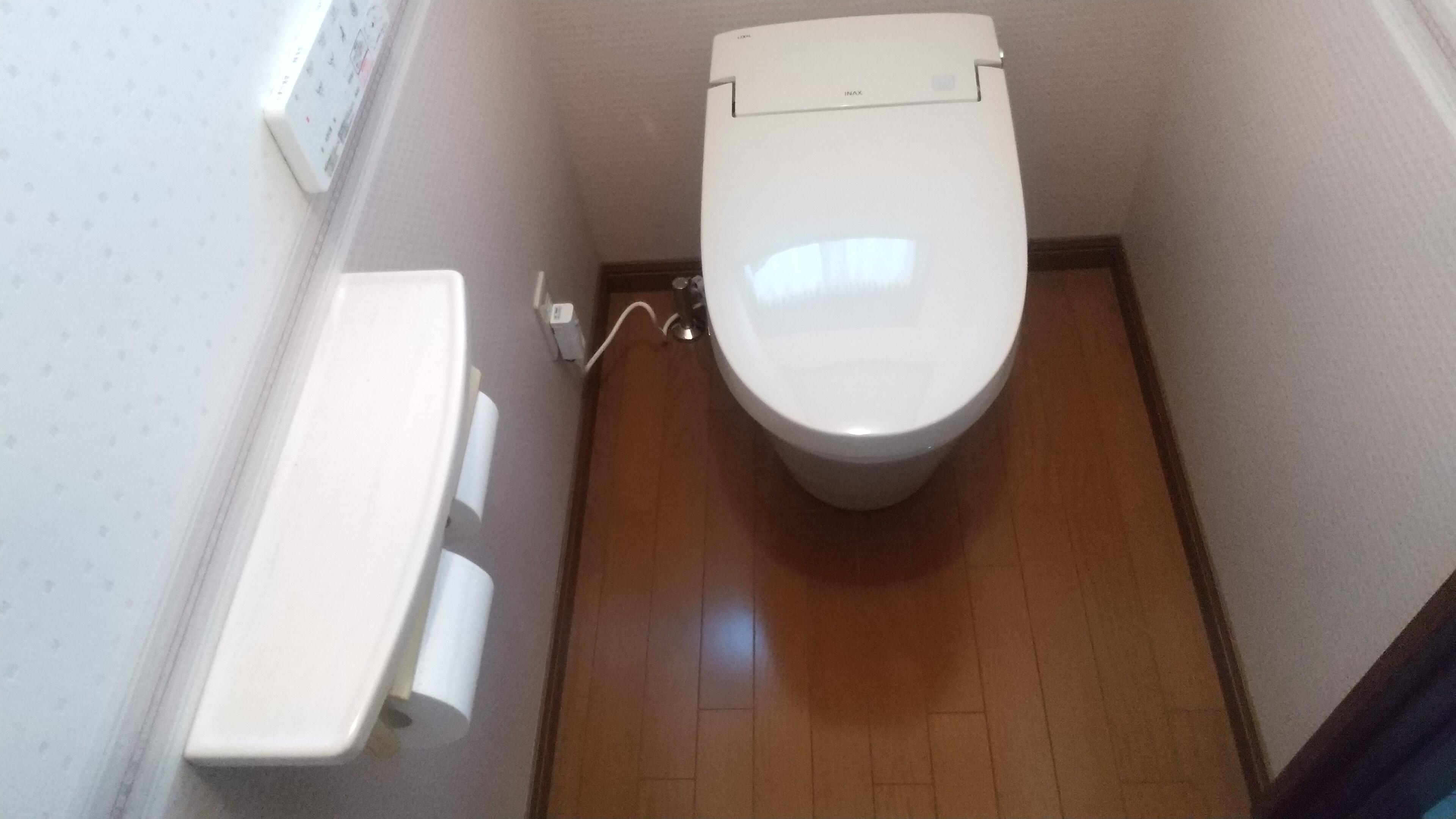 ショールームイベントに足を運んでくださったお客様です。 今までご利用になっていたトイレに使いづらさを感じていて、1階・2階とも交換検討とのご相談でした。 当初はどちらもサティスSを検討されていましたが、1階はサティスGと迷っておられましたので、1階は家族だけでなくお客様もご利用になること、元々が広い空間でしたので、Sよりも重厚感・高級感のあるサティスGを勧めさせていただきました。
