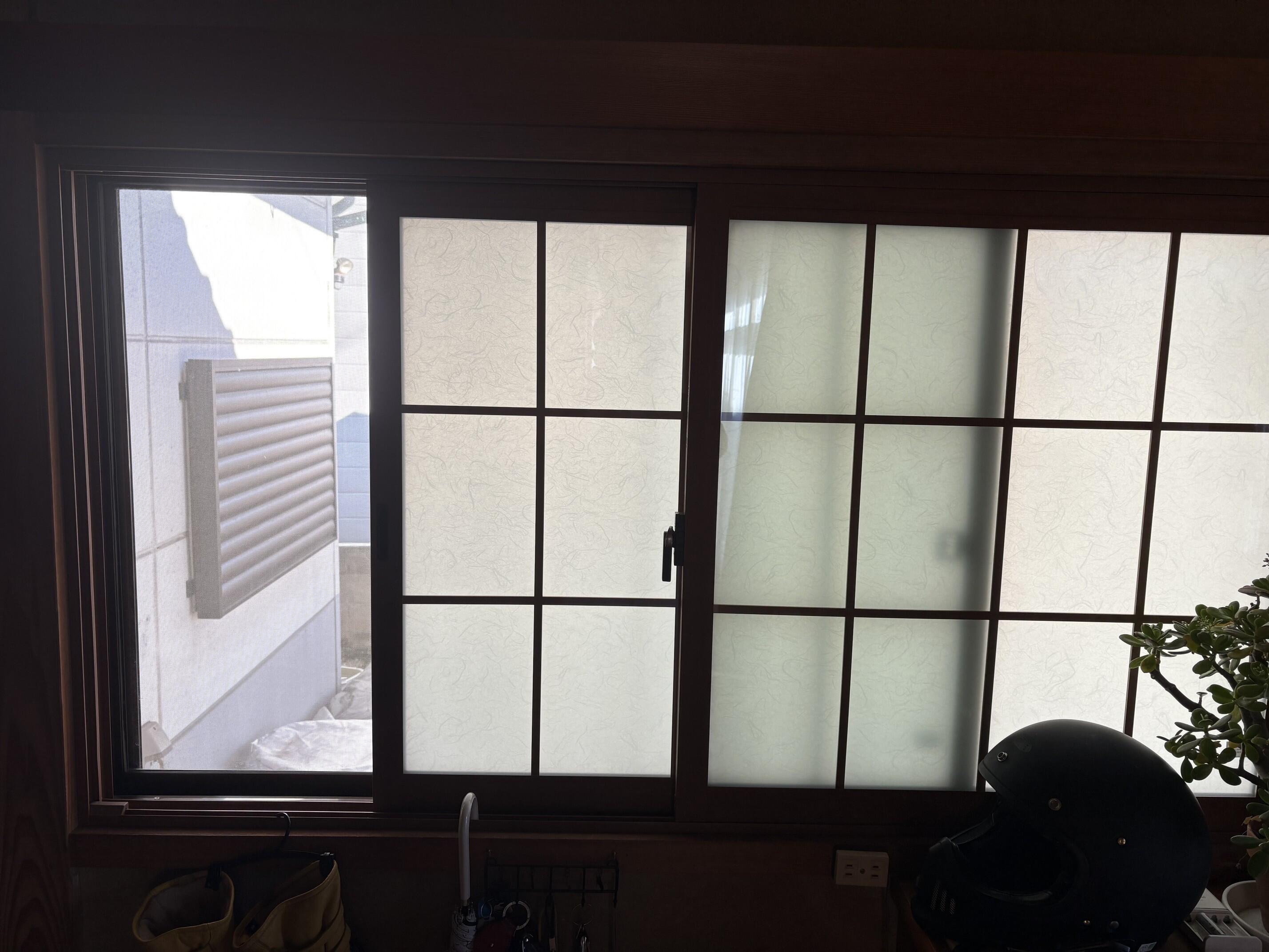 以前から冬になると家じゅうの寒さにお悩みだったK様。補助金を活用し、1階の窓に8ヶ所内窓を取り付けました。 障子だった箇所はインプラスで格子柄の障子に似たものを取り付けて、暖かくも目隠しと今までの趣をそのままにしています。