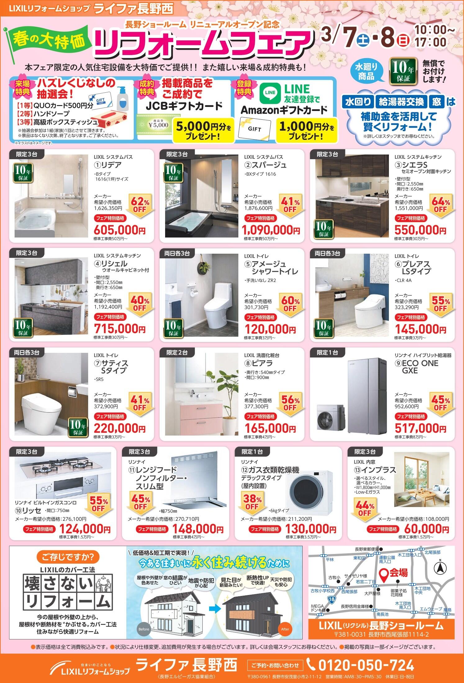 春の大特価リフォームフェアを下記日程で開催いたします。