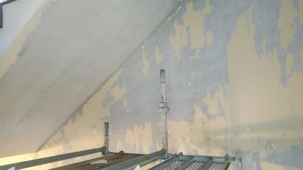 先日より、階段ホールの壁クロスの貼り替えをしています。
