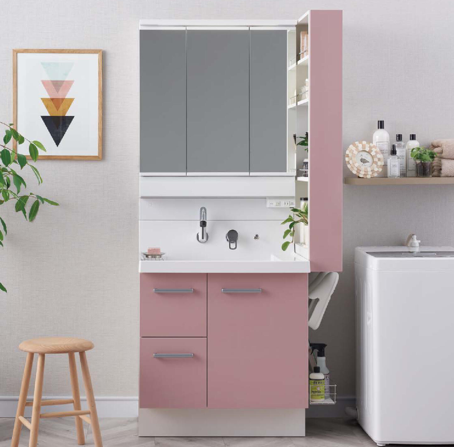 扉タイプの洗面台は、扉の裏側を有効活用して、小物をしっかりと収納出来ます♪