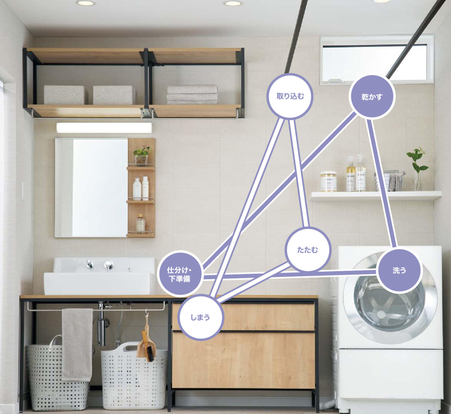 家の間取りだけではなく、洗濯の悩みやこだわりに合わせてのプランニングが可能なので、洗濯から収納までの動線を短くしてタイムパフォーマンスを上げることができます!
