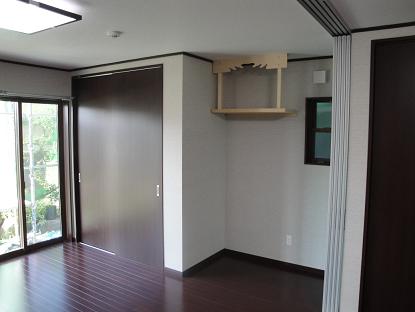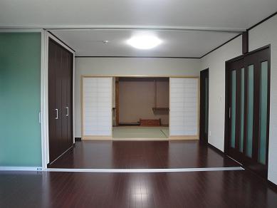 生活スタイルの変化に伴い、昔ながらの和室の続き間をリフォーム。ご家族の集まる憩いのスペースをこちらに移し、快適なリビングになりました。広いリビングを用途に合わせて利用できるように、部屋の中央にパーテーションを設置し、和室スペースも再度作りました。
