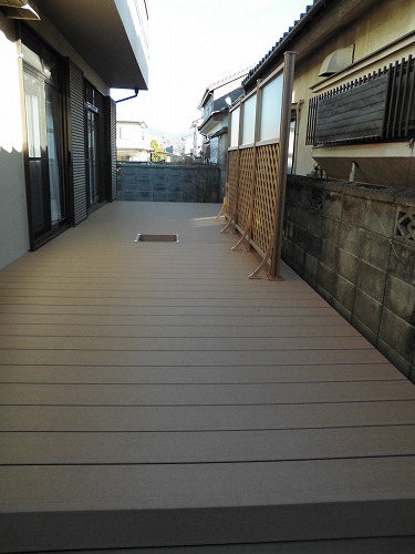 庭木を伐採して、お庭全体にウッドデッキを設置しました。広いスペースに変わり、お庭を有効に使うことが出来ました。