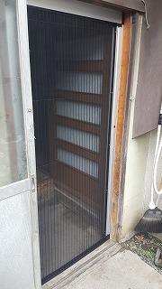 夏の蒸し暑い夜など、玄関や勝手口で通気を取りたいお客様に後付け網戸「しまえるんですα」の設置をご提案。忙しいお客様に工事の時間もかけずに、短時間で完成しました。