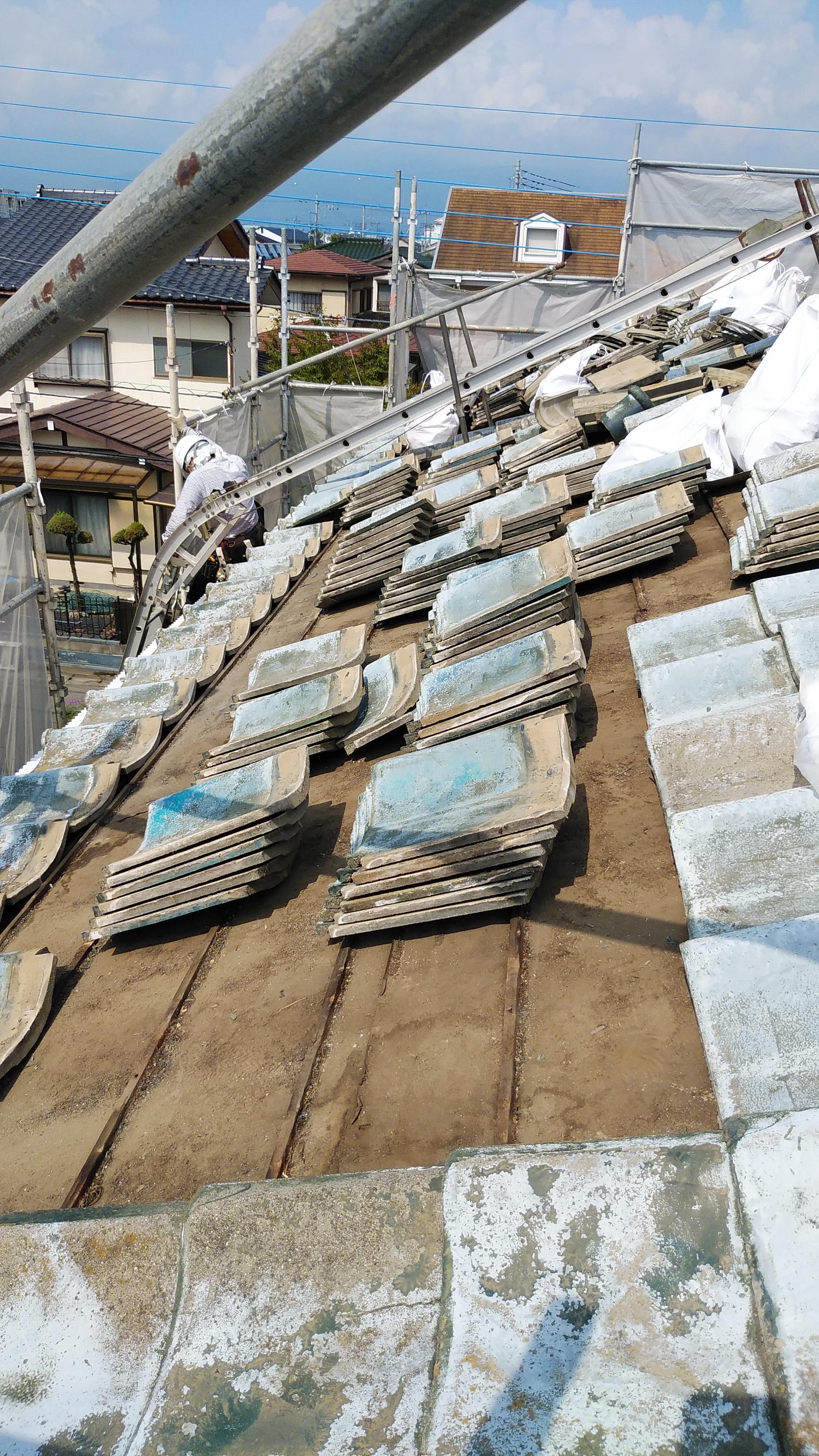 アスベスト含有の瓦だと思われ、ドキドキしながら始まりましたが 普通のセメント瓦(JISマーク刻印有)で、ホッとしました。 屋根裏に断熱材も入れて、耐震性・断熱性ともにアップしました