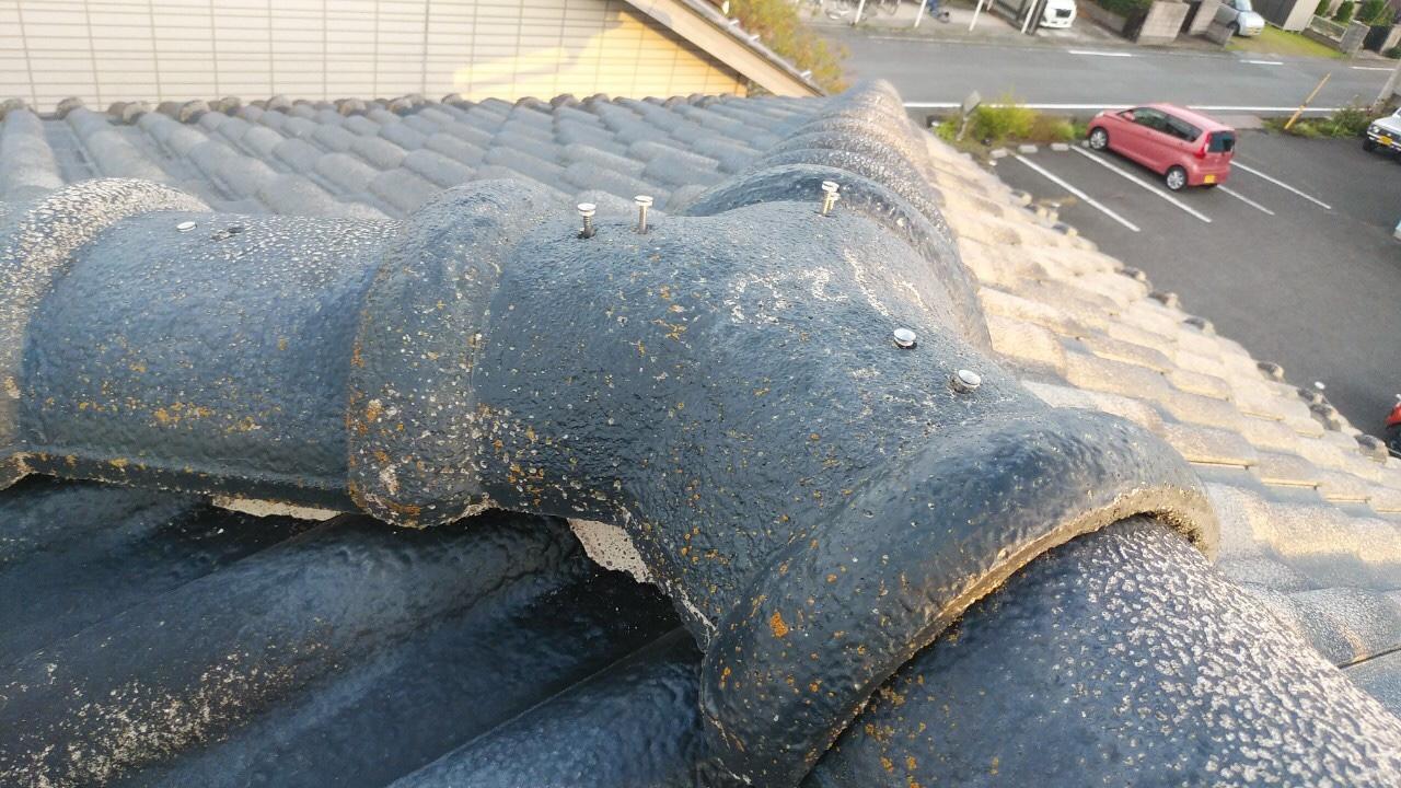 台風被害の復旧工事に伺いました。 風圧でゆるんだ瓦の留め具をすべて打ち直し復旧致しました(^^)/