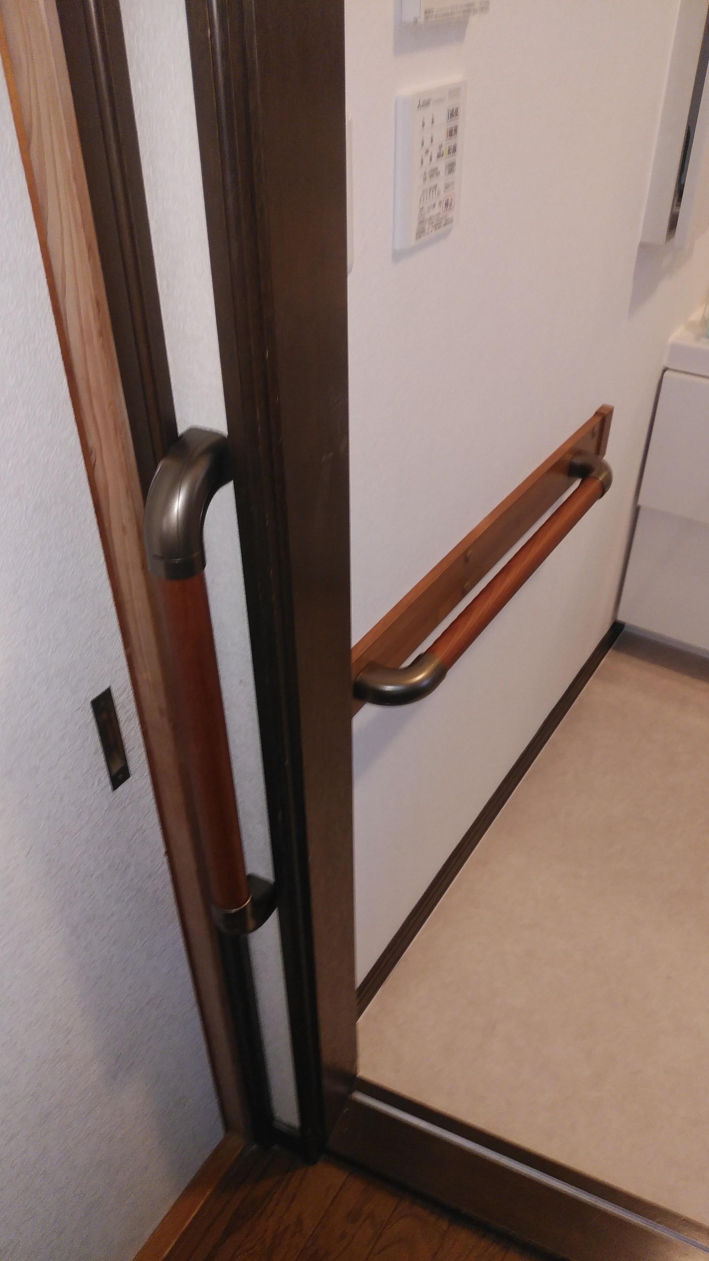 高齢のお婆様の為に、玄関に手すりを設置。軽微な工事ではありますが、お婆様には実際に高さ・長さを一つづつ確認していただき、使う方に合わせた位置で取付けいたしました。