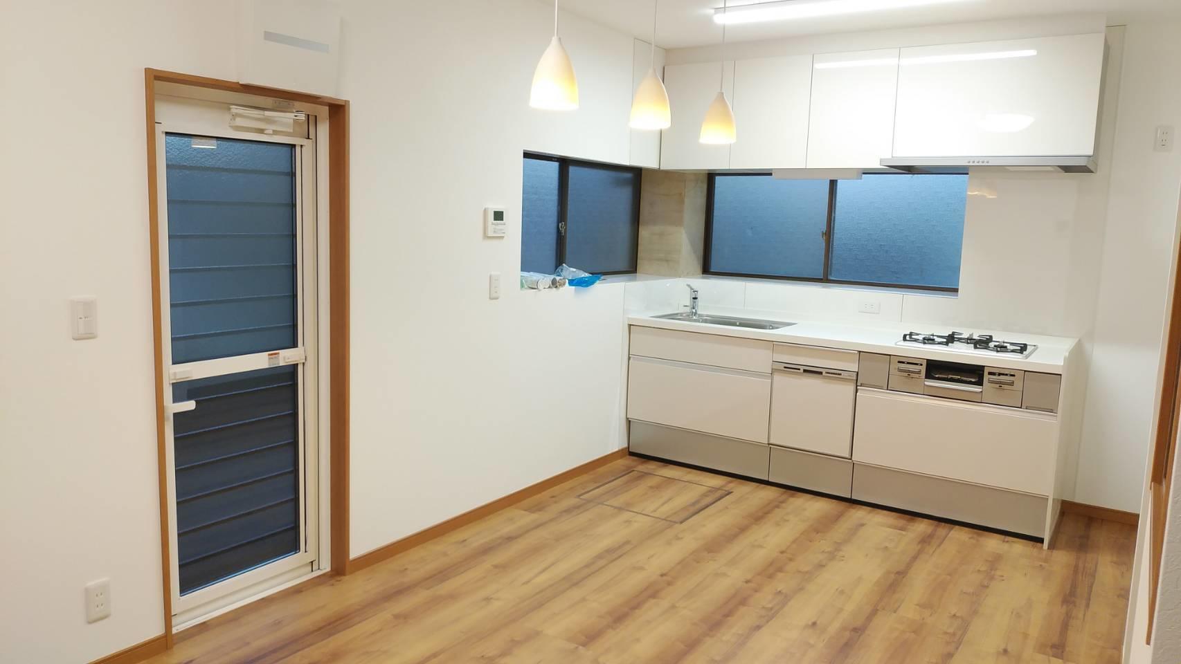 改修工事の進捗報告です(^^) ダイニング・キッチン・廊下・洋室1部屋・和室2部屋・玄関引き戸・屋根工事が完成し、いよいよ工事も大詰めです!残す工事は二階に増設しました、トイレブースの仕上げです☆ 最後まで気を引き締めて頑張ります(^O^)