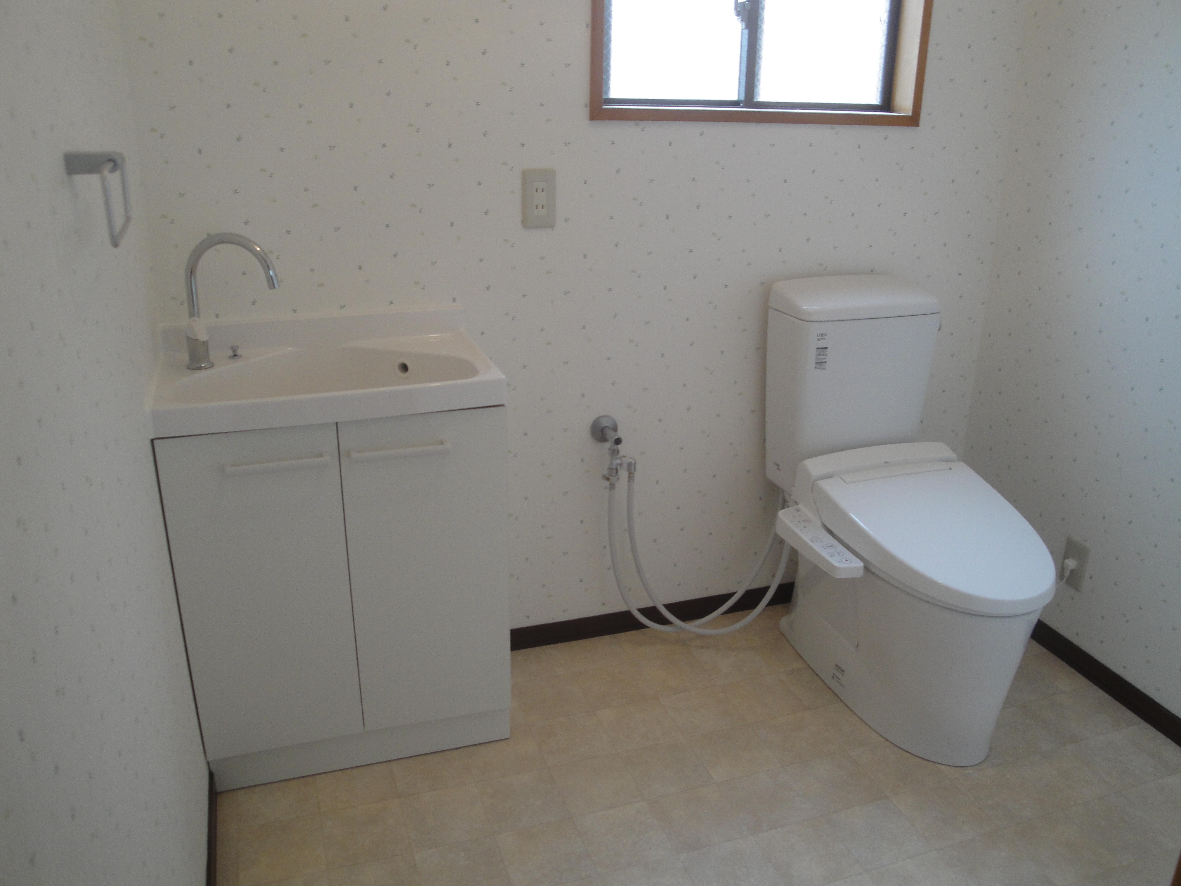不要な棚を取り払いスッキリ&シンプルなトイレ空間にリフォームしました(^_^)/ 同時に内装も貼り替えて清潔感のある空間になりました☆