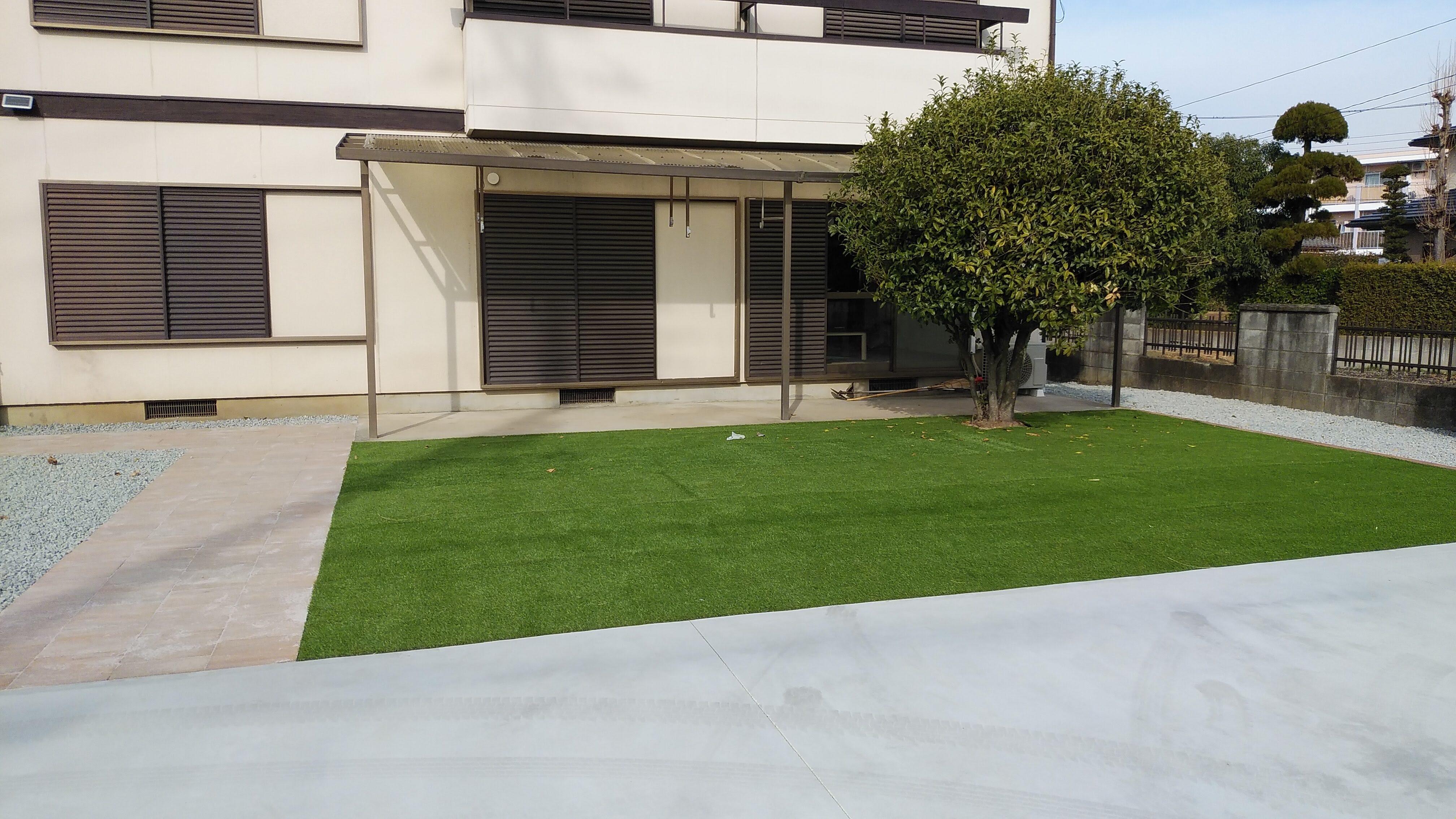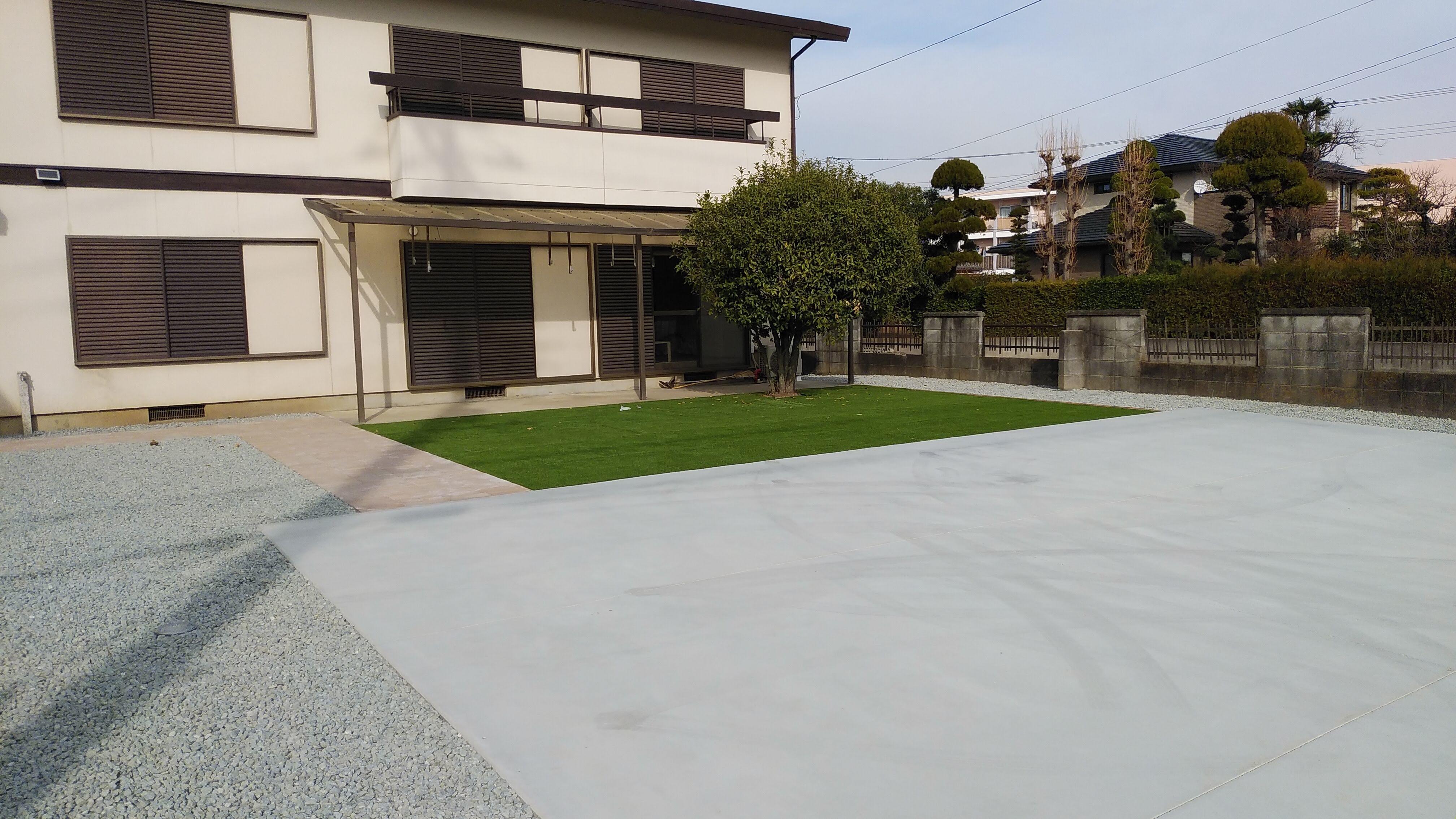 【エクステリアリフォーム】(甲府市) 広いお庭にコンクリートのアプローチと芝を敷いて雑草の手入れなどを管理しやすくしました