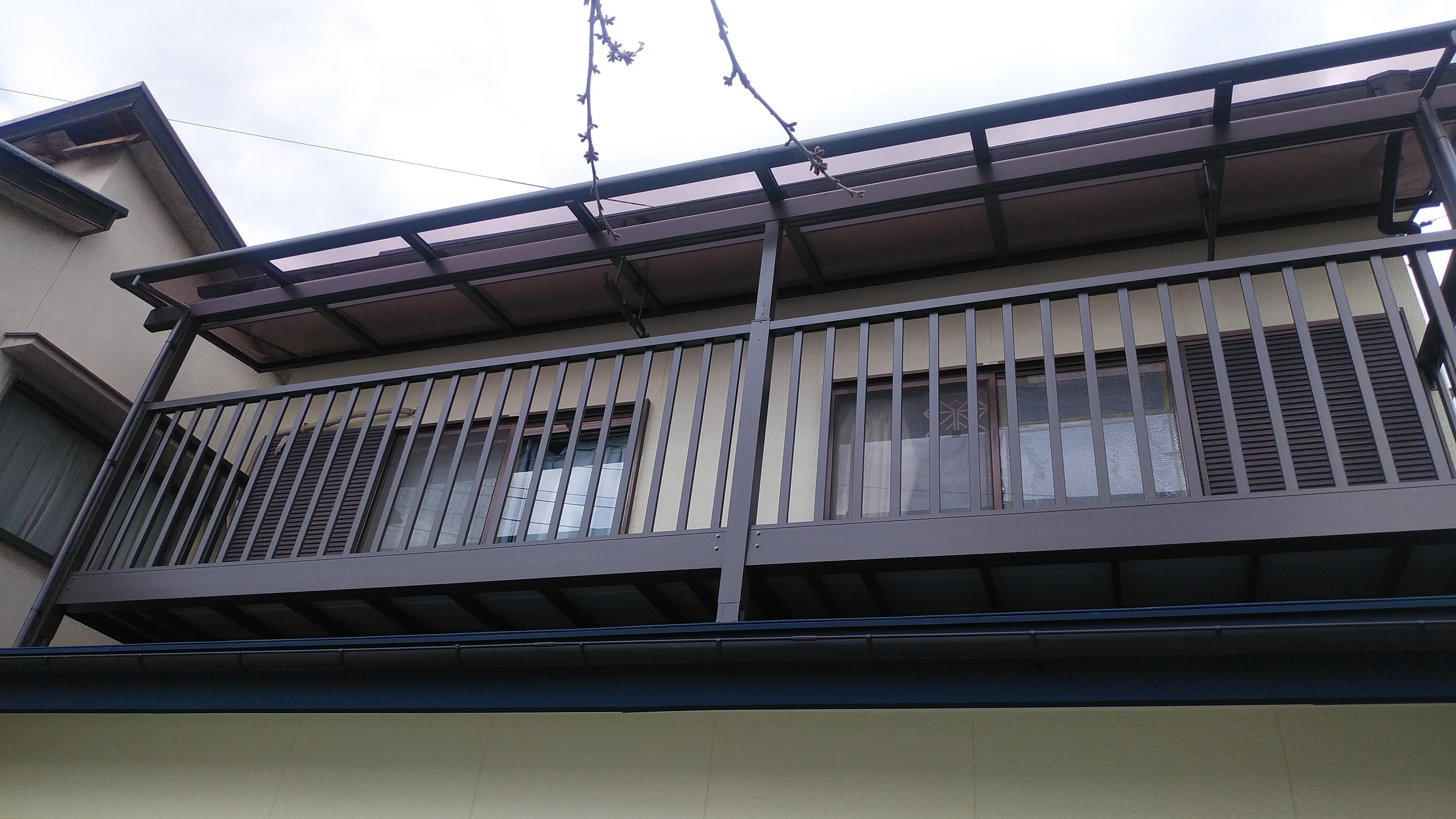 経年で錆てしまったバルコニーを入れ替え。LIXILのビューステージ+屋根スピーネの組み合わせ。色はオータムブラウンを選定したことで、しっかりと重厚感のある仕上がりになりました。