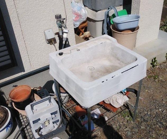 今までは、流し台の位置が高く、バケツも置きづらい状況でしたので、 今回はバケツが置けるように低い位置に流しを設置しました。 また、水栓金具は2口になっていて、散水ホース用に口があるタイプをご提案。 散水の度に吐水口にホースを付け替える手間がなくなり、お客様も「こういうのが欲しかったのよ♪」と喜んでいただきました。