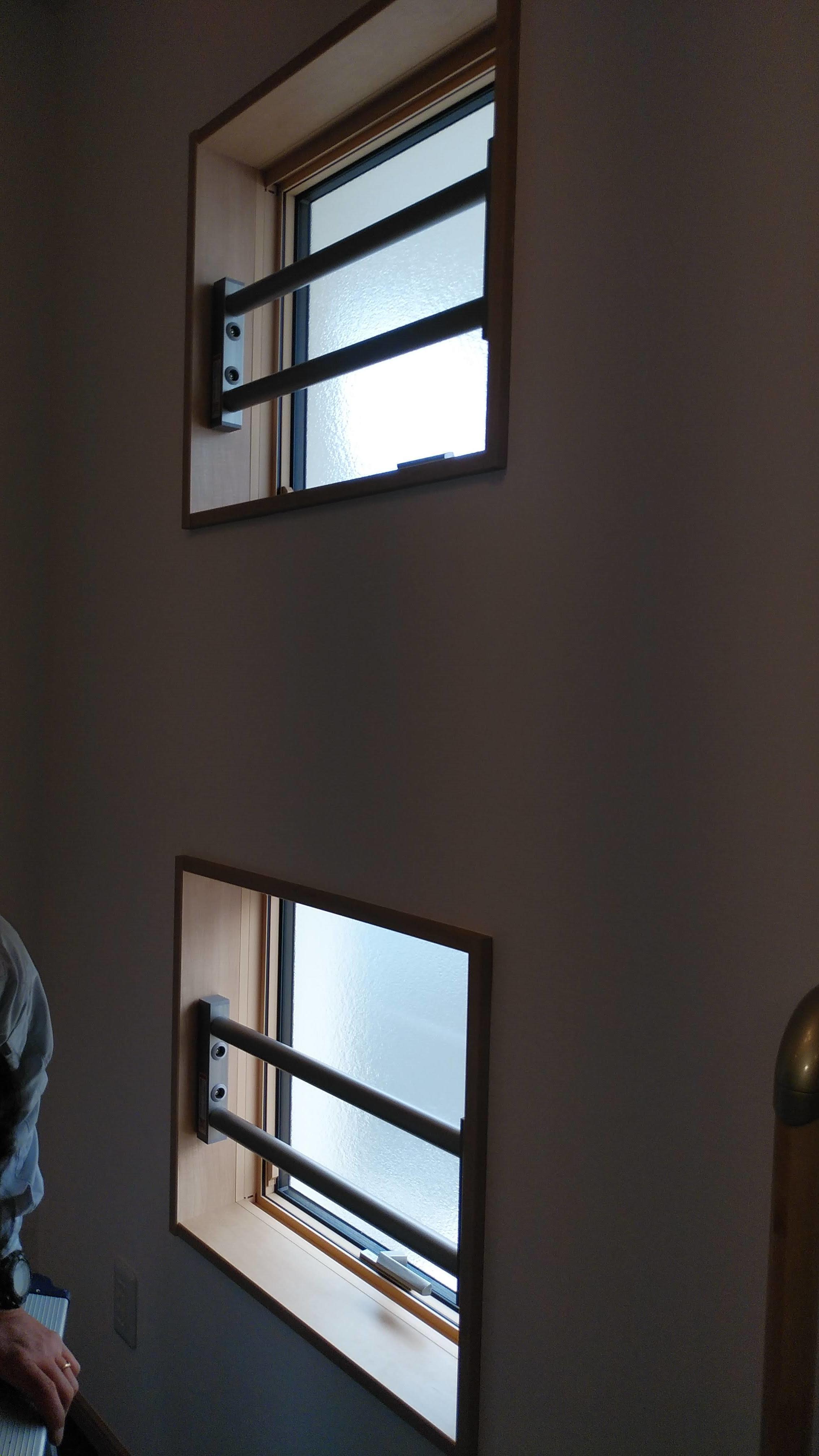 窓の開閉に邪魔にならず、かつ お子さんが身を乗り出せない位置を 確認しながら取り付けさせていただきました。