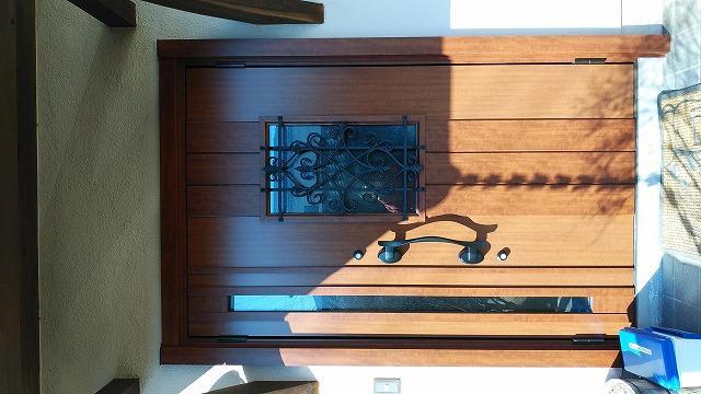 本物の木でできた素敵な玄関ドアでしたが メンテナンスが大変だったりし 交換することに!