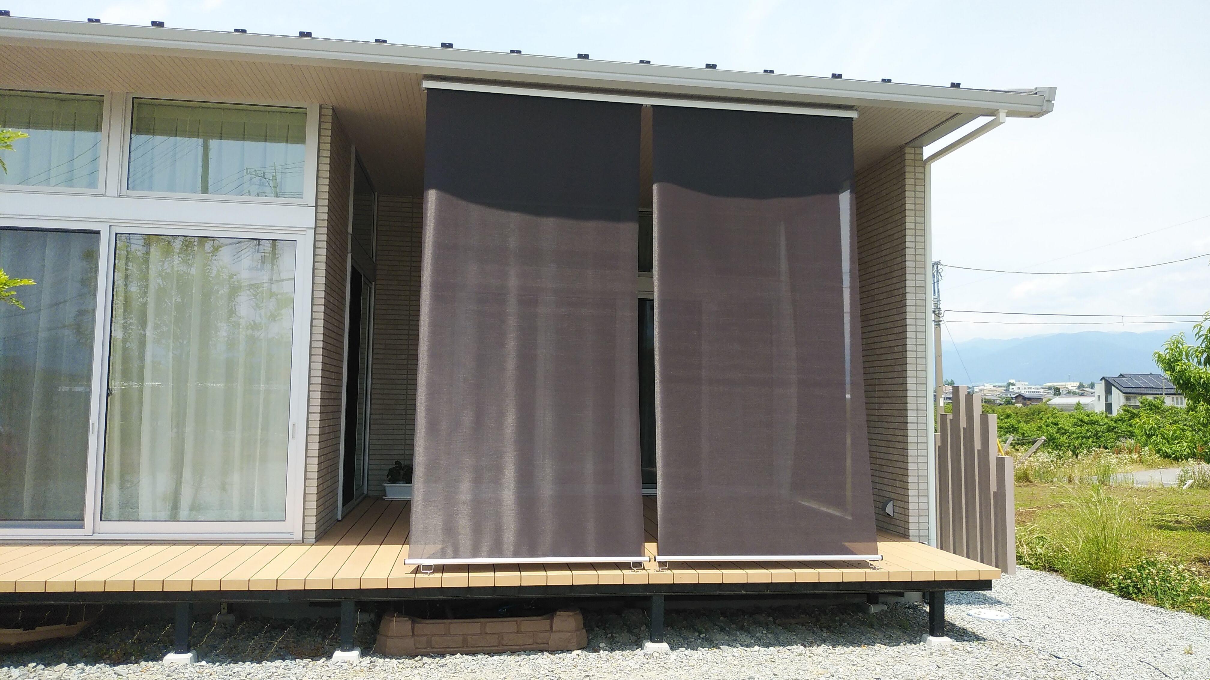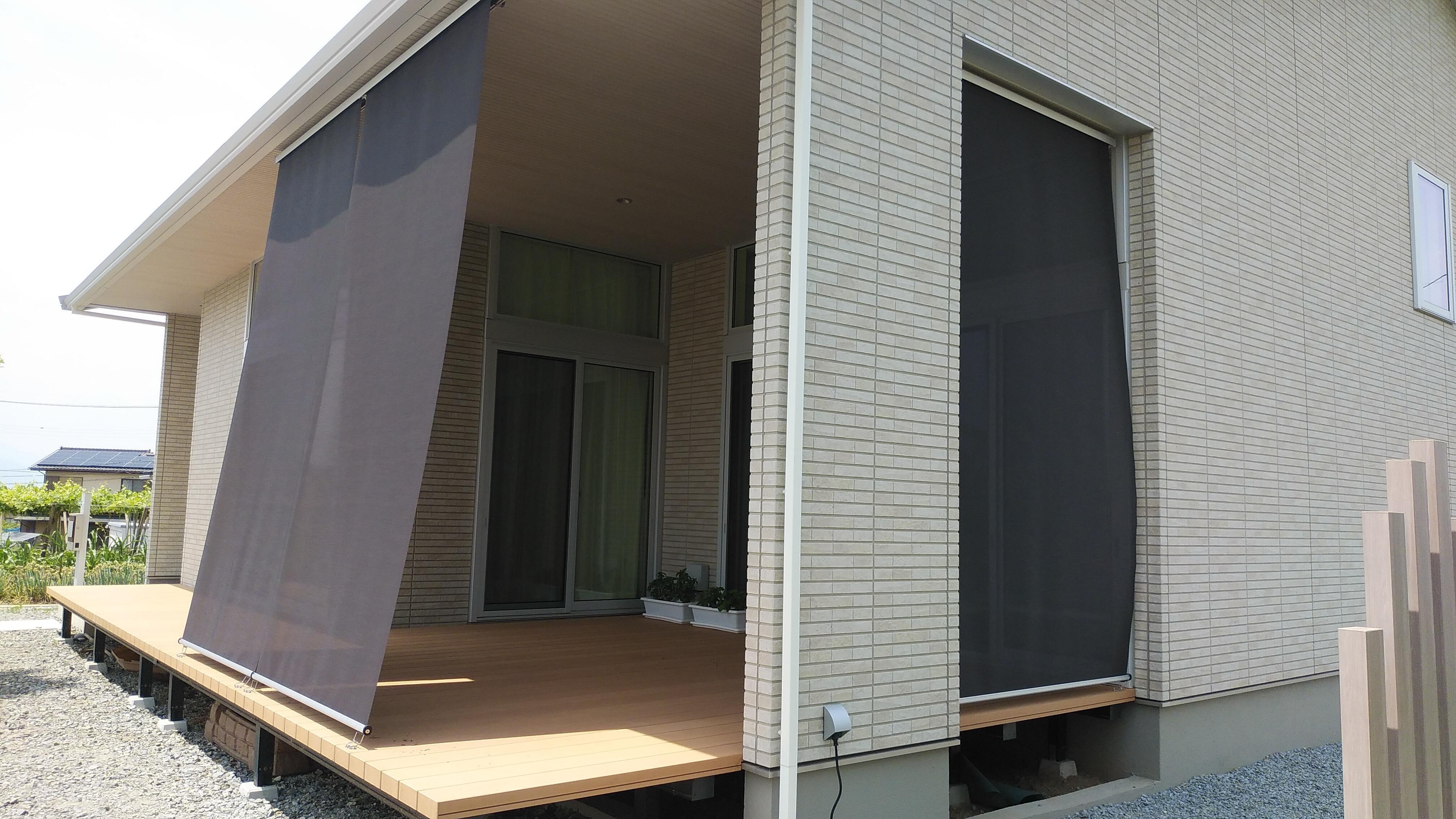 通リ沿いに面したお宅でした。ウッドデッキ上でくつろぐには少し落ち着かないスペースのため 今回目隠しを兼ねてシェードを取付ました(/・ω・)/ お庭と調和したり、風が強い時は簡単に収納できます☆彡
