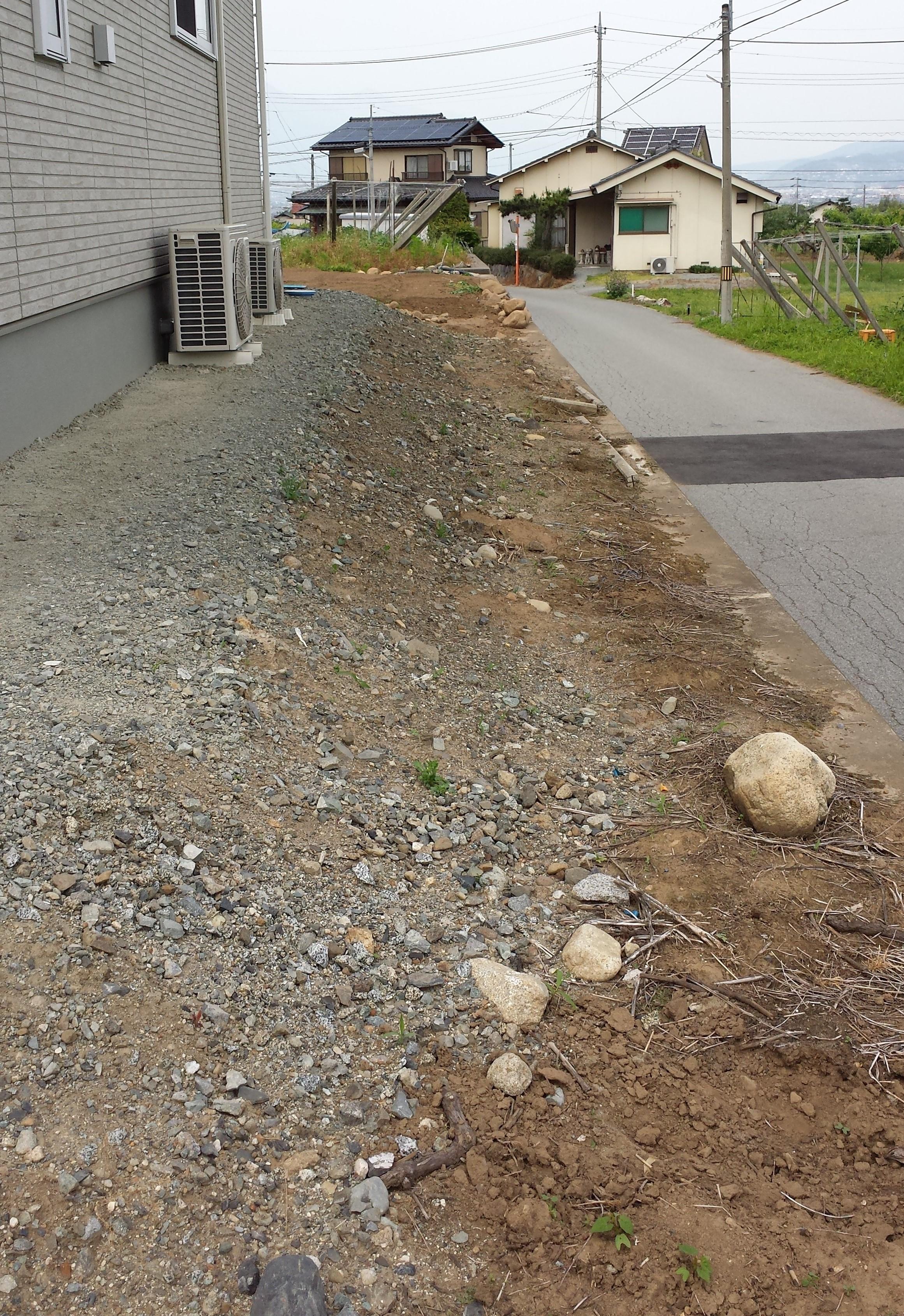 新築されたO様邸の外構工事です(/・ω・)/ 閉鎖的にはしたくないとの事で植木とリクシルのデザイナーズパーツの木目調枕木を境界ラインにランダムに入れて植木と調和する様心がけました。 北側道路と高低差がきつく敷地があがっているためお子様には危ない状況でした。 ブロックとフェンスで安全に。 また敷地が広いため防草シートを敷き込みお手入れにも配慮していきました。