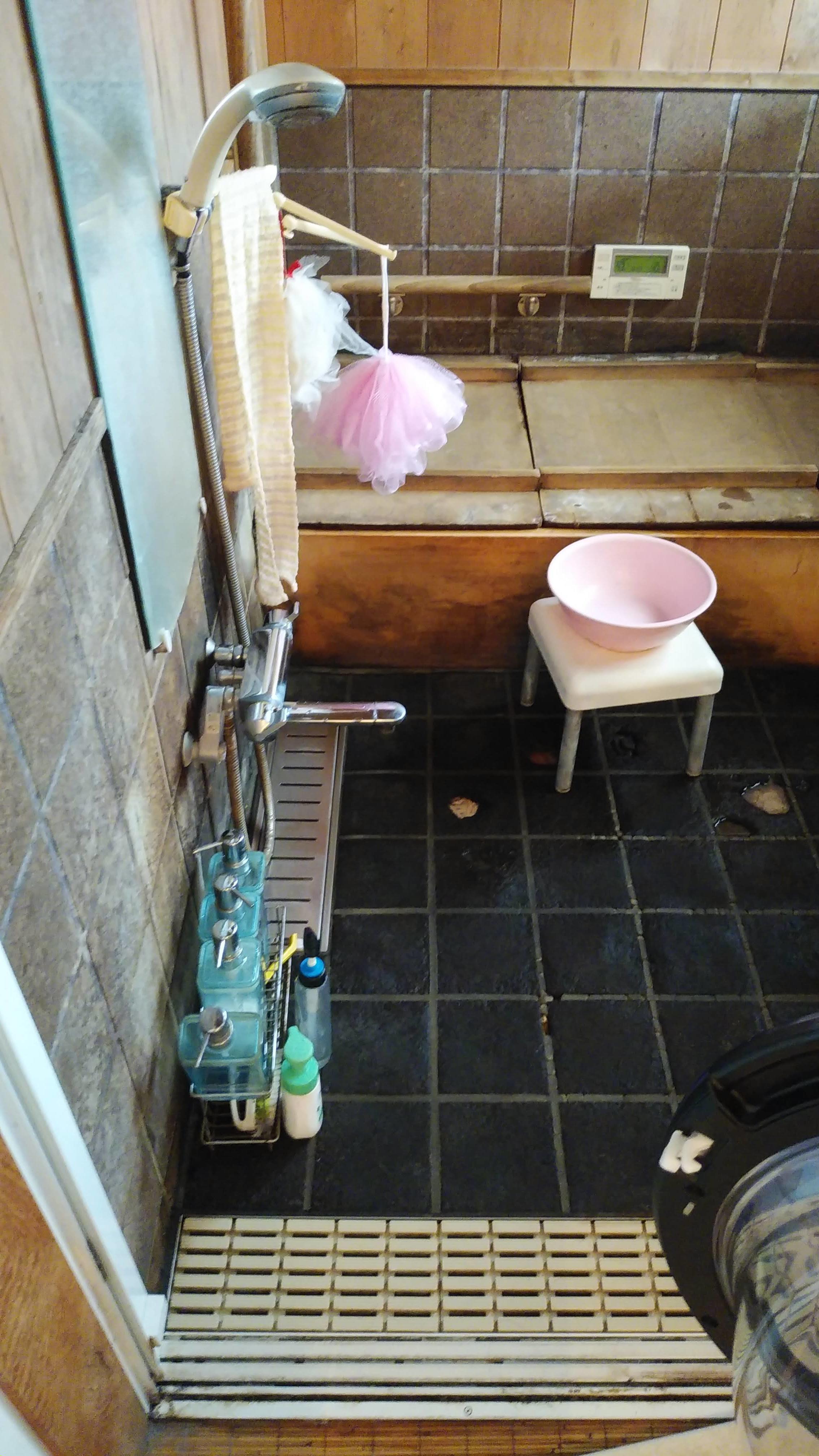 「タイル貼りに天然木の浴槽」というお風呂から、ユニットバスへ交換いたしました。天然木の浴槽は広くて、魅力的!タイルも柔らかい素材のもの(コルクタイル)なので、冷たいわけでもなく、手触り良しのものでしたが、お手入れの面ではなかなか大変でした。最終的には、コルクタイルが徐々に剥げてきてしまい、掃除するほど、コルクがなくなっていく状態でした。