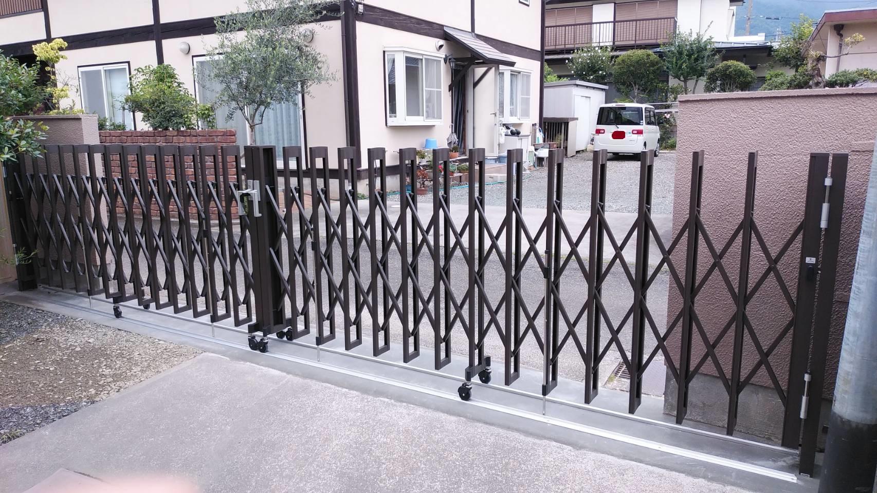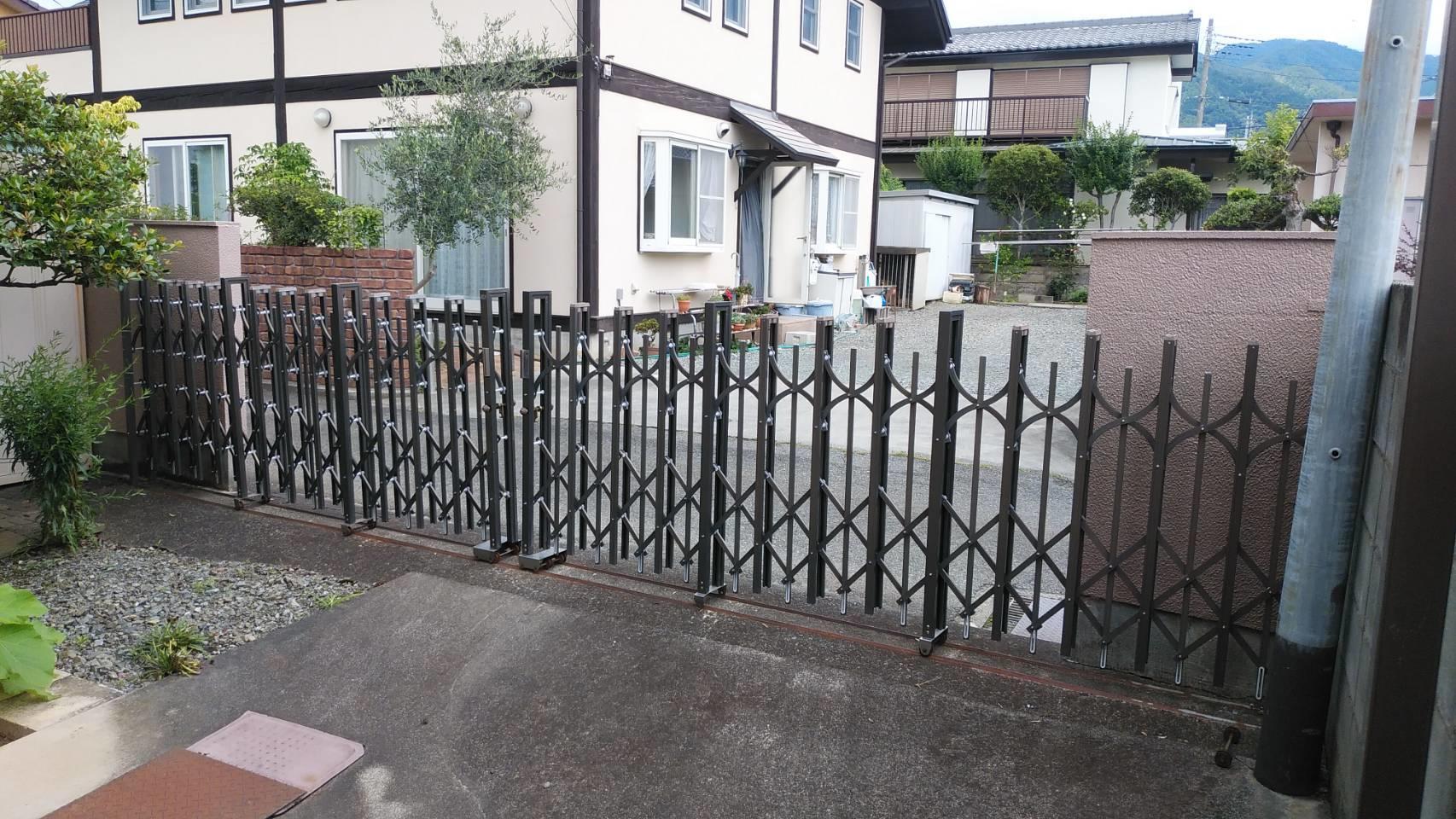 先週から工事しておりました、伸縮門扉の工事が完成致しました(^^)/ 既存門扉は勿論、土間コンクリートもすべて解体して以前より強度の強い門扉に交換できました。