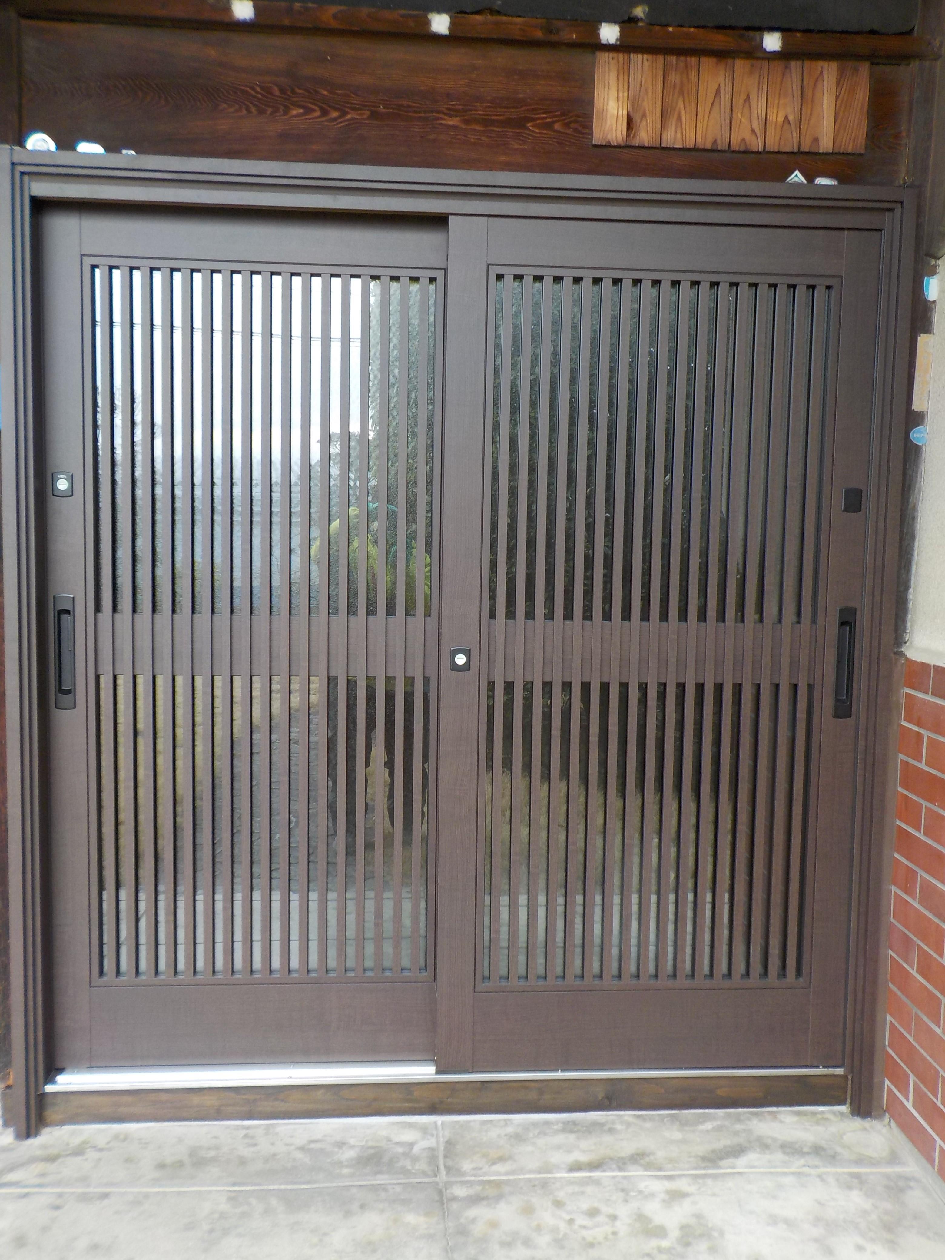 築200年の代々大切にされている住居です。 玄関扉が古くなり開け閉めが大変になってきたのもありましたが 防犯面にはかけるとの事で玄関扉を入換ました。 築200年の風合いを壊さない建具にさせて頂きました。