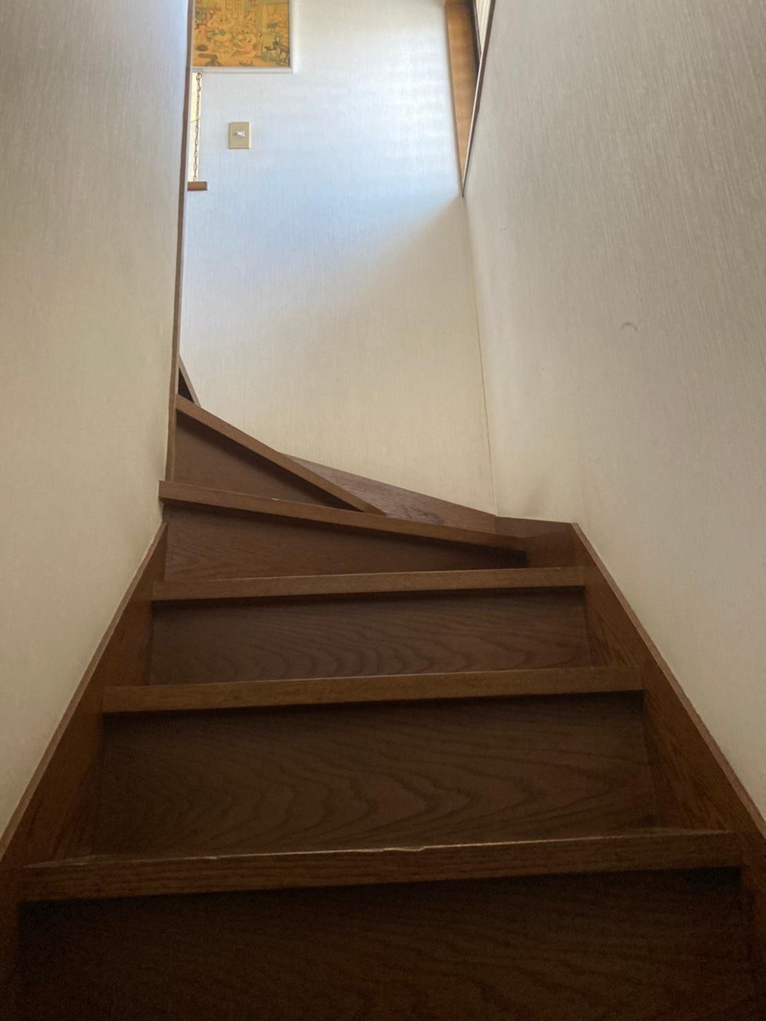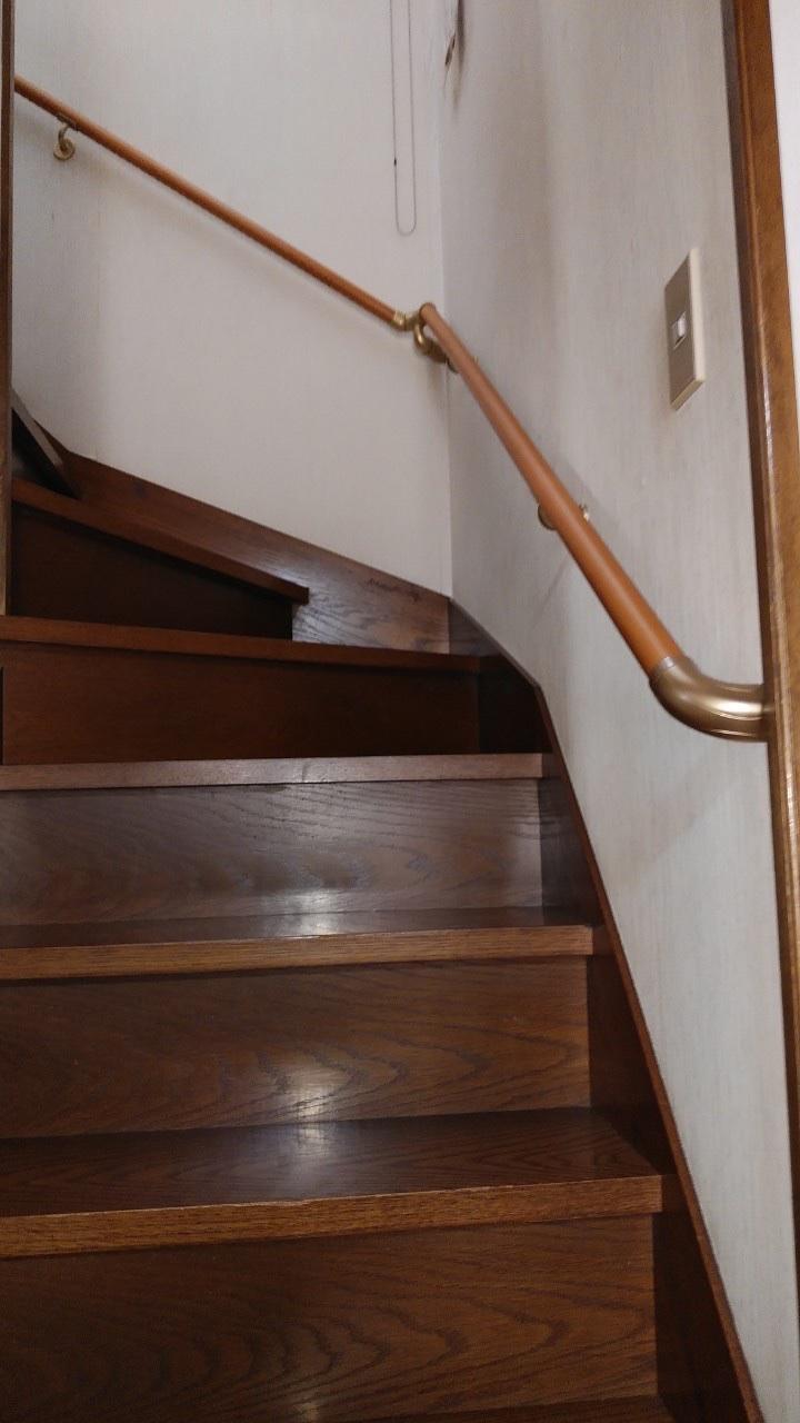 今まで階段に手すりが無く、昇降の際に大変危険な状況でした。 昇降のサポートになりますのでご自宅の階段に手すりが無い方は是非お問い合わせくださいませ。 新設した手すり棒は握りやすく溝が加工されていますのでオススメです(^O^)
