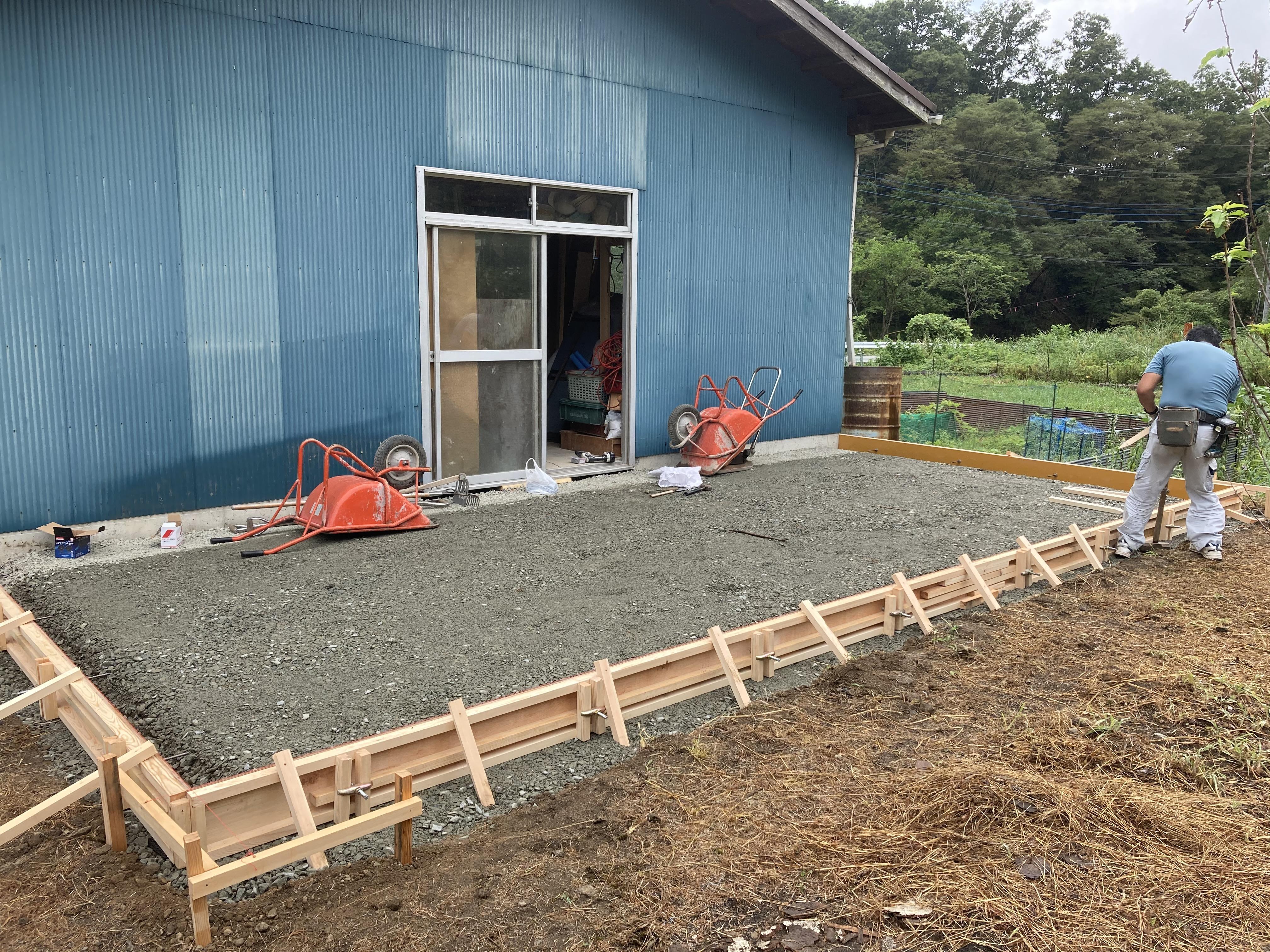 作業場で利用していた倉庫が手狭になってきたので増築したいとご依頼を賜り、基礎コンクリート工事の打設工事を行いました。 お施主様が腕利きの大工さんですので我々の仕事内容はここまでです。コンクリートが乾燥したら建物を増築するそうですので完成したら、見学に行く予定です。後日完成写真アップ致しますね(^O^)