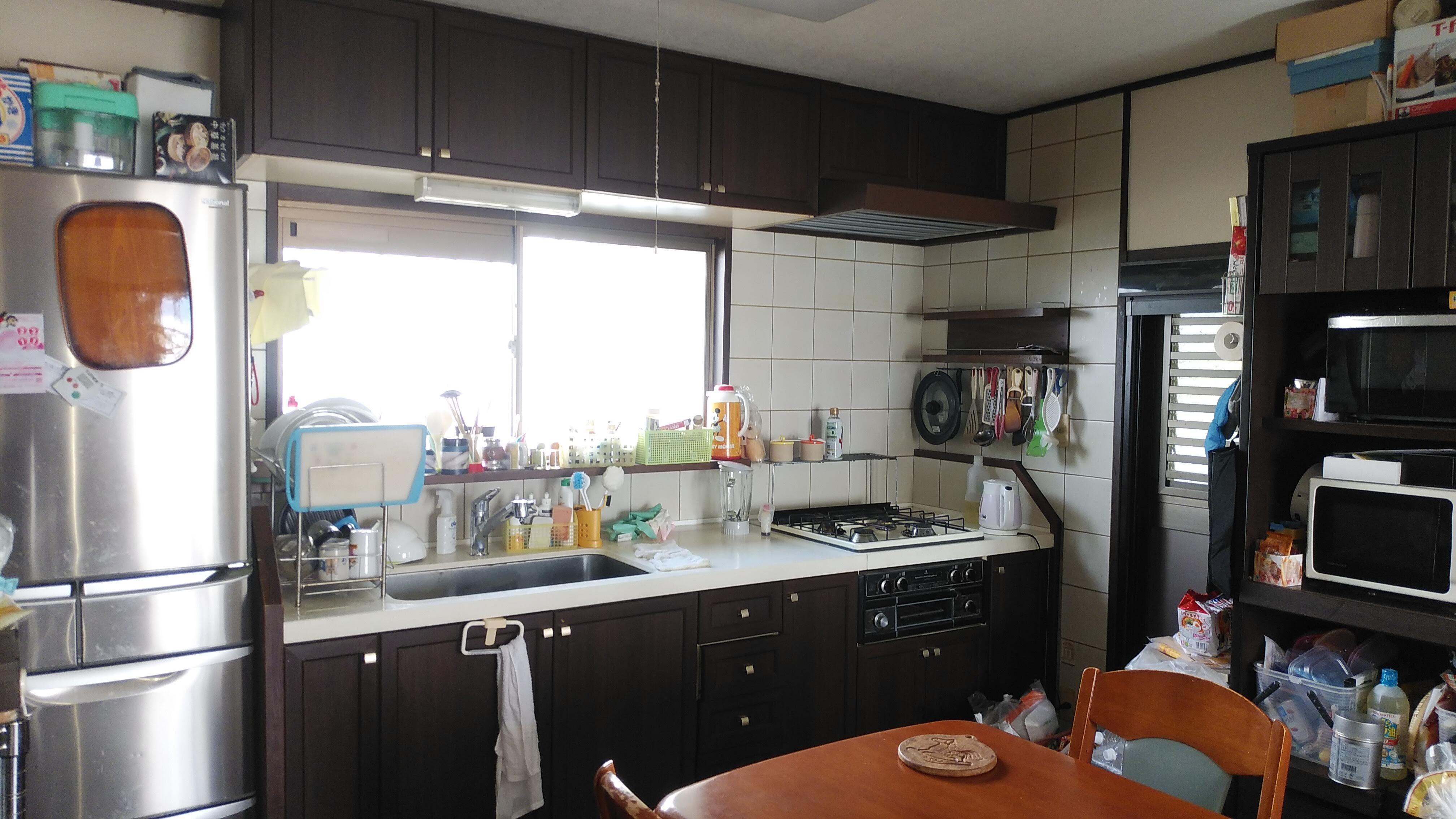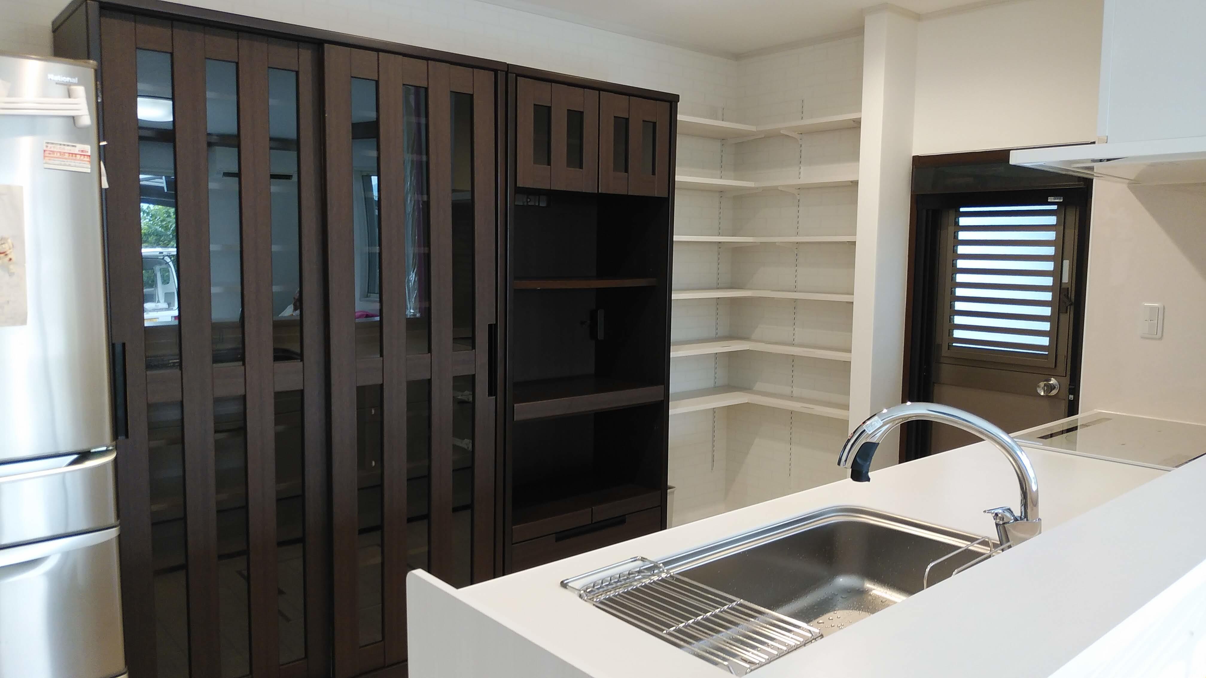 収納が苦手ですっきりさせたいとのご依頼でした。 キッチンを引出タイプに入換て食器棚と可動棚を設け細かく収納する物を分かりやすくしました。 今回は対面キッチンにカウンターテーブルを設け家族みんなが楽しめる様工夫しました。