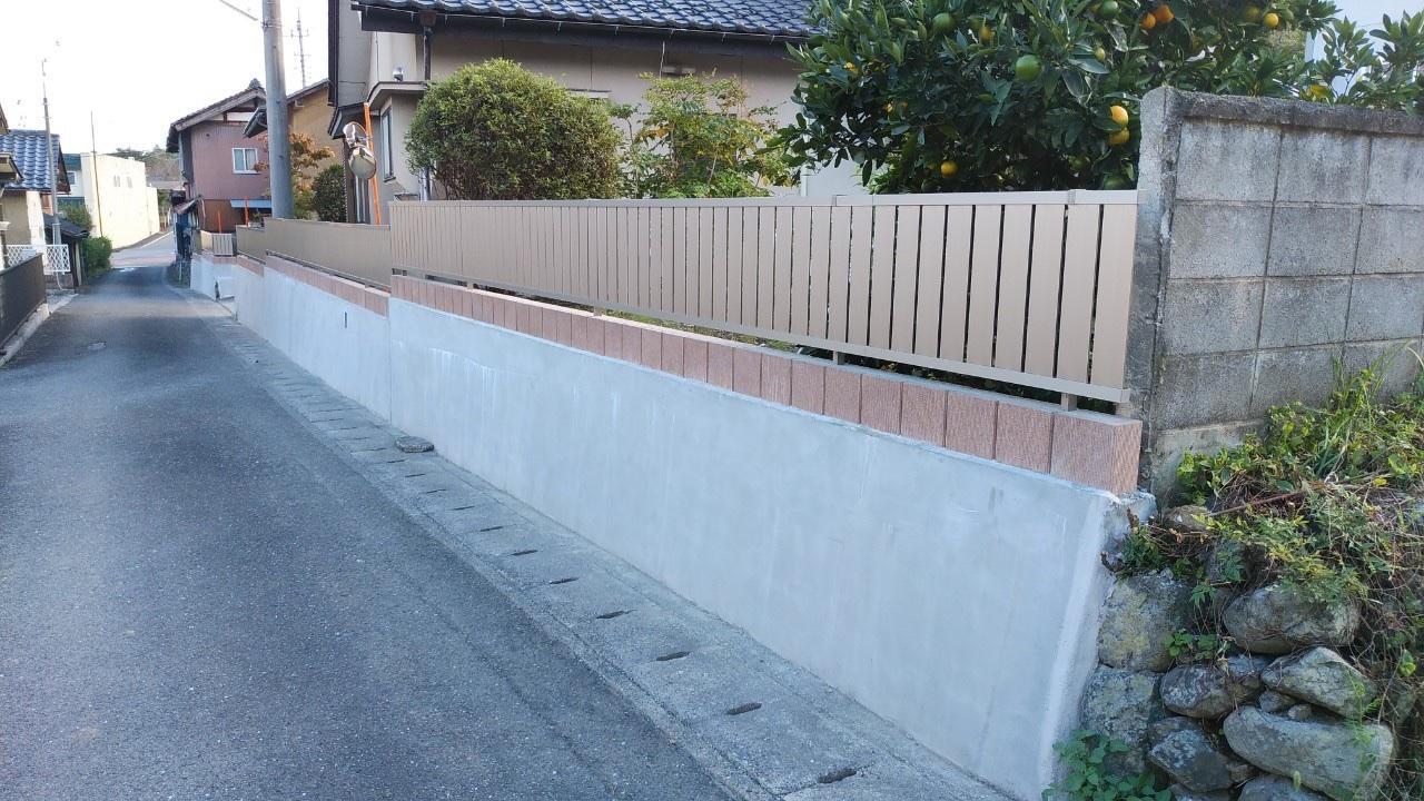 経年劣化していたブロック塀を撤去し、新たにフェンスを取付けいたしました。 通学路に面していた為、お施主様も今後は安心ですね(^^)石垣の基礎表面は左官でモルタルでキレイに仕上げました☆ お施主様には工事中も毎日お茶の支度をして頂き、大変お世話になり感謝です(T_T)