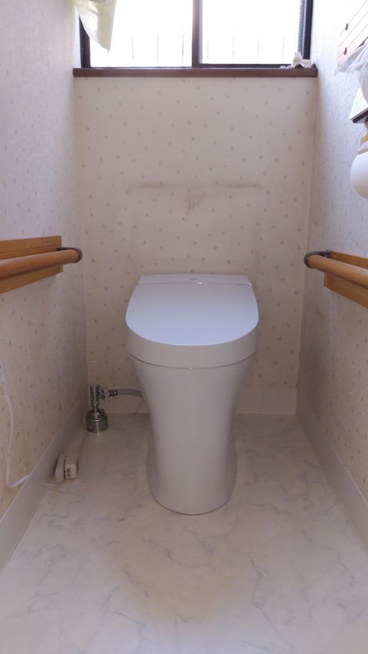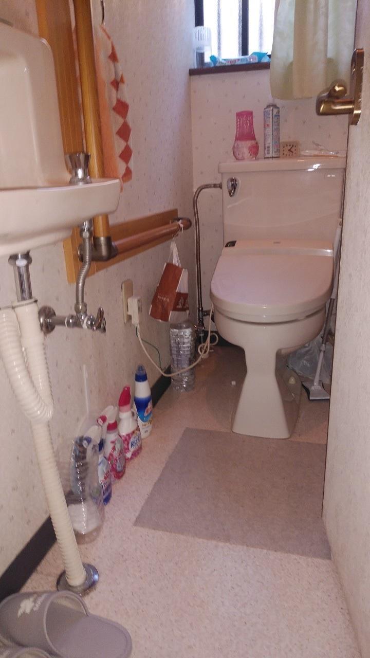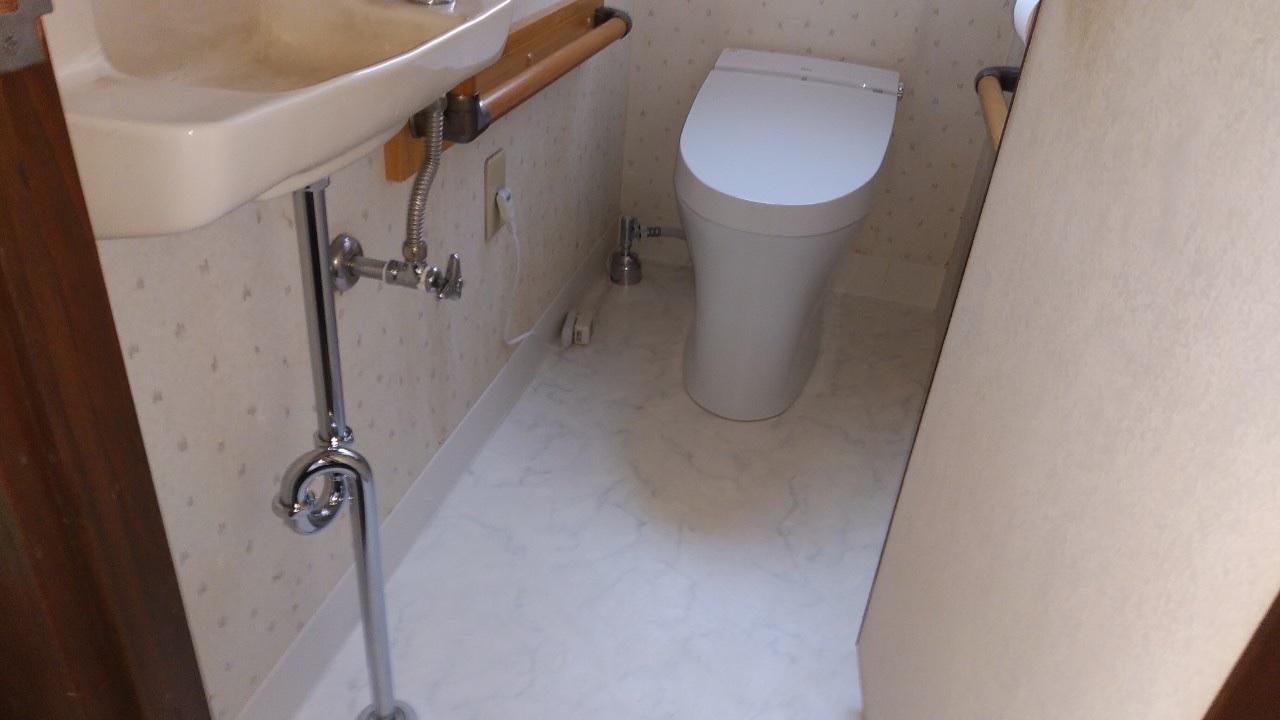 自動で便フタが開閉するフルオート便座付のサティスSタイプに交換です。 床クッションフロアも一緒に貼り替えると共に、手洗い器の排水不良で過去に漏水しているとのことでしたので排水トラップも同時に交換しました。清潔感溢れる空間に生まれ変わりました。