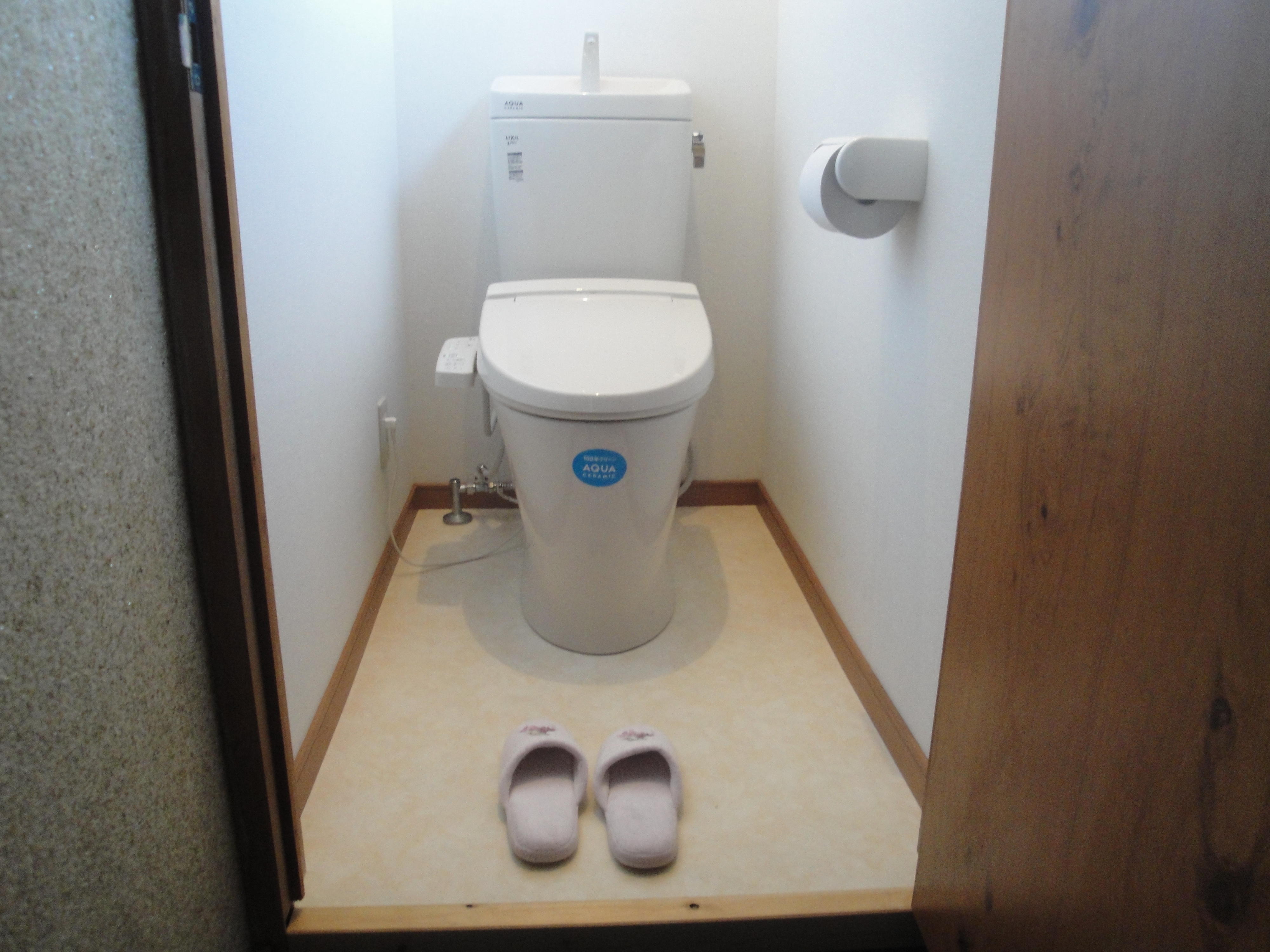 和式トイレから洋式トイレに大変身!タイル張りだった床と壁を、白を基調とした壁紙とシートに張り替え、明るく清潔感のあるトイレに。段差も解消され、安心して使えるようになりました。