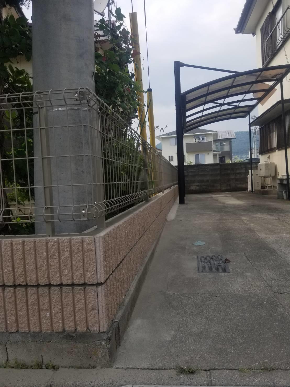 植木によって隣家との境界が分かりづらくなる事と植木がハミ出す事を防ぐため、ブロック塀とフェンスを設置しました。