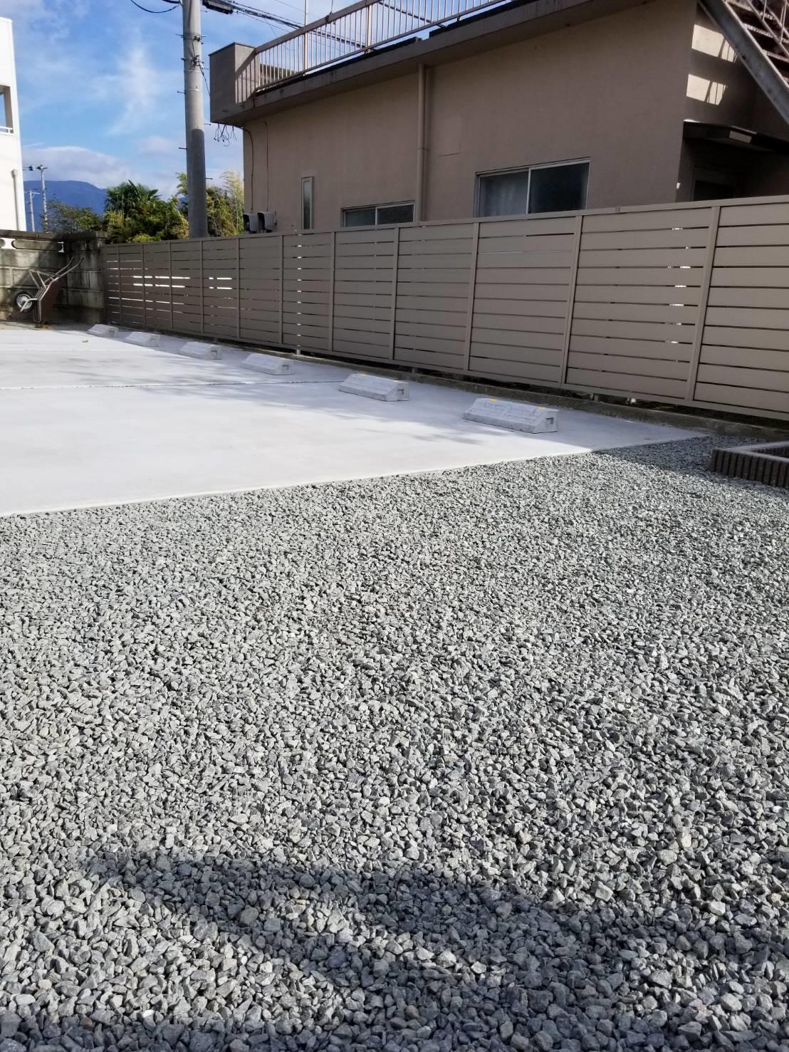 隣家との境界に目隠しフェンスを設置し、お互いのプライベートの確保をしました。砂利による防草効果も期待できます。