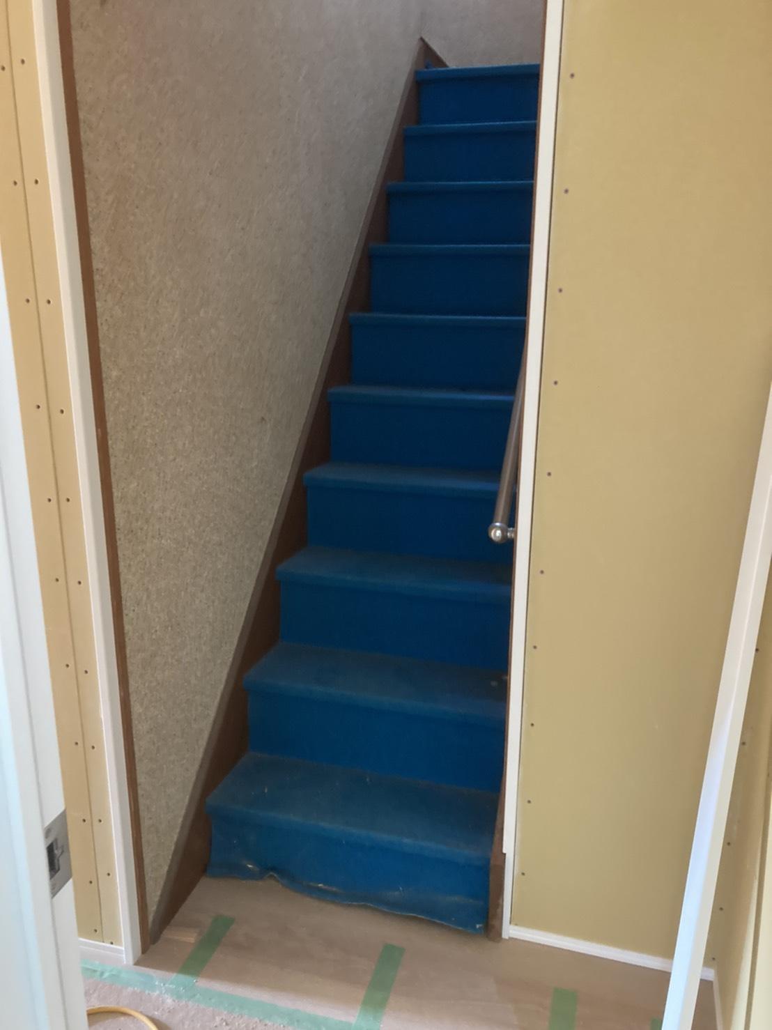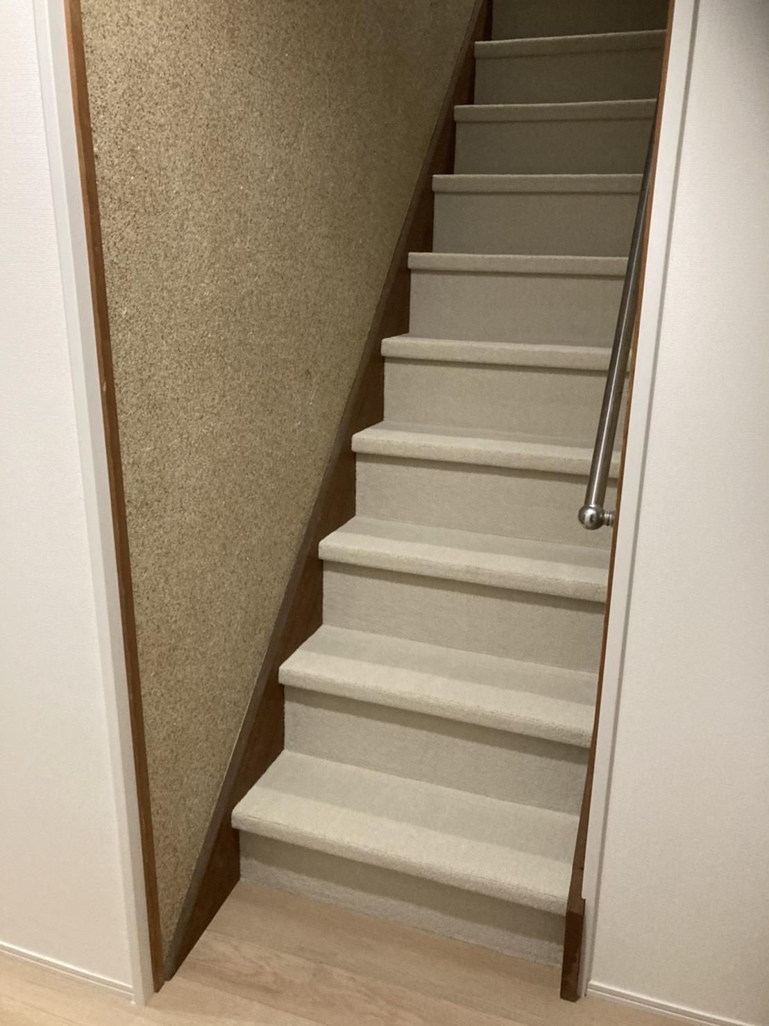 階段の床カーペットを廊下のフローリングカラーに合わせて貼り替えました☆ 統一感が出て階段・廊下が明るく感じられますね