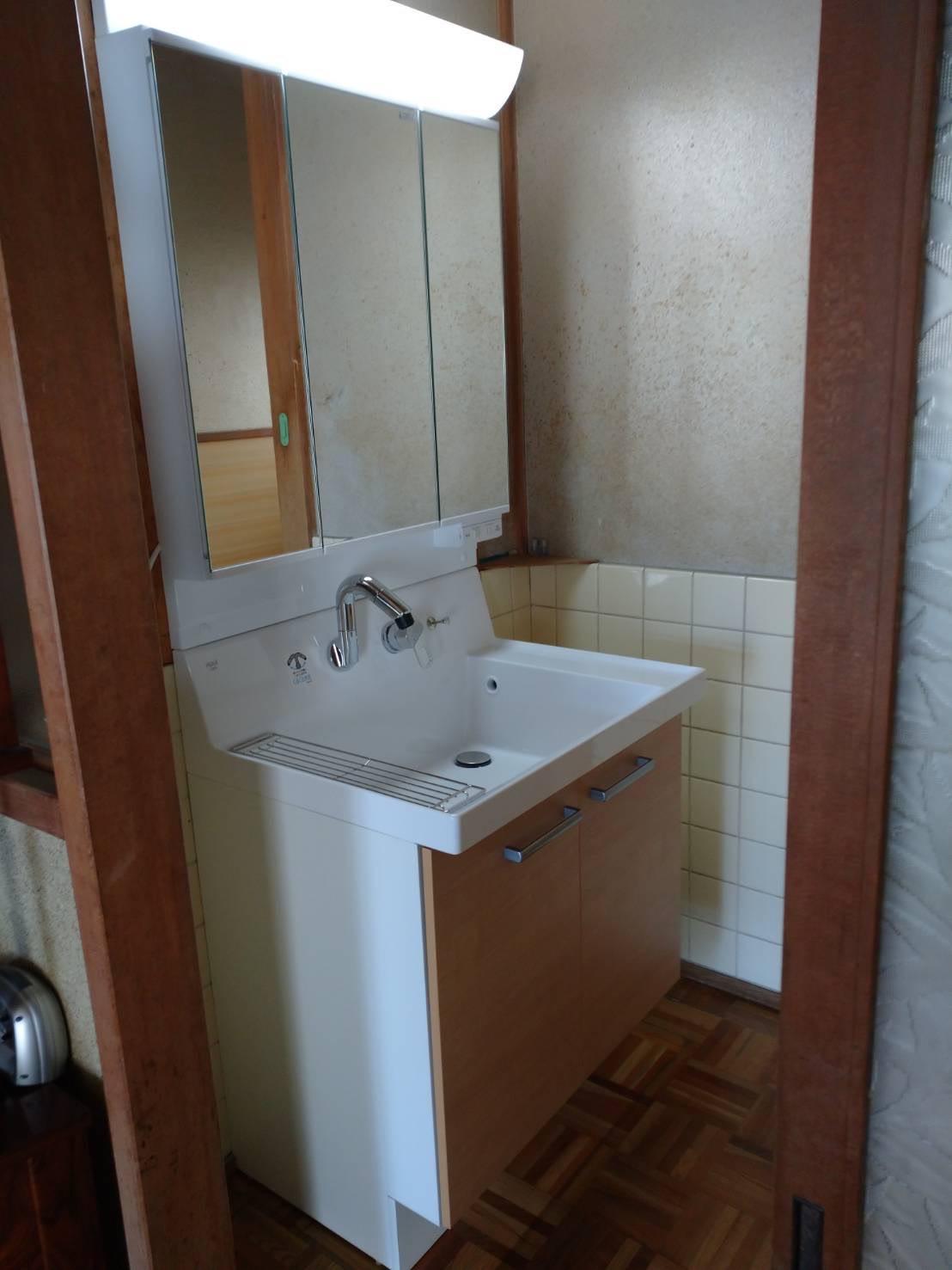 長くお使いの洗面台をLIXIL製ピアラへ交換しました。排水ホースからの水漏れがきっかけで今回ご依頼頂きました。 3面鏡なので収納力も抜群です(^^)明るいクリエペール色の扉カラーを採用しましたので空間が明るく感じられます。 照明は勿論LEDで高寿命です(^^)