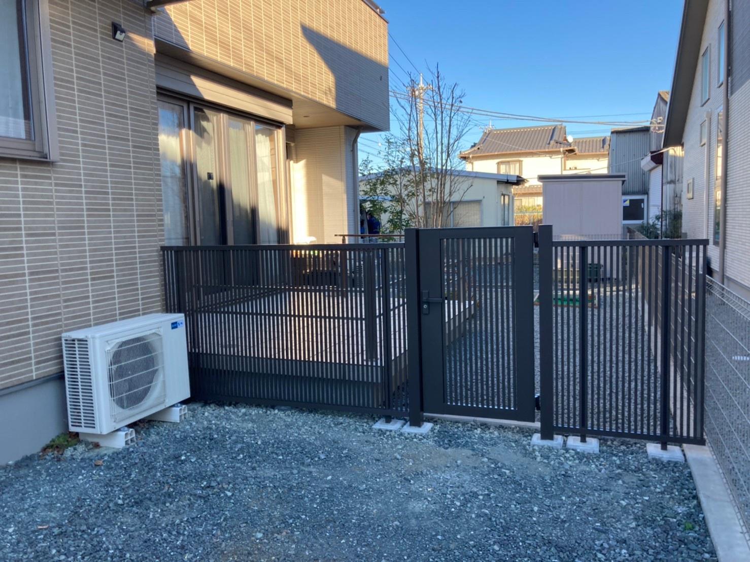 新築のお客様で庭の目隠しとワンちゃんの遊び場を確保したいとご依頼頂き、フェンスと門扉を設置致しました(^^) ご希望のカラーオータムブラウン色・シャイングレーの2色を採用し、外観に合うデザインに仕上がりました(^O^) ワンちゃんも存分に走り回れますね(^^)/