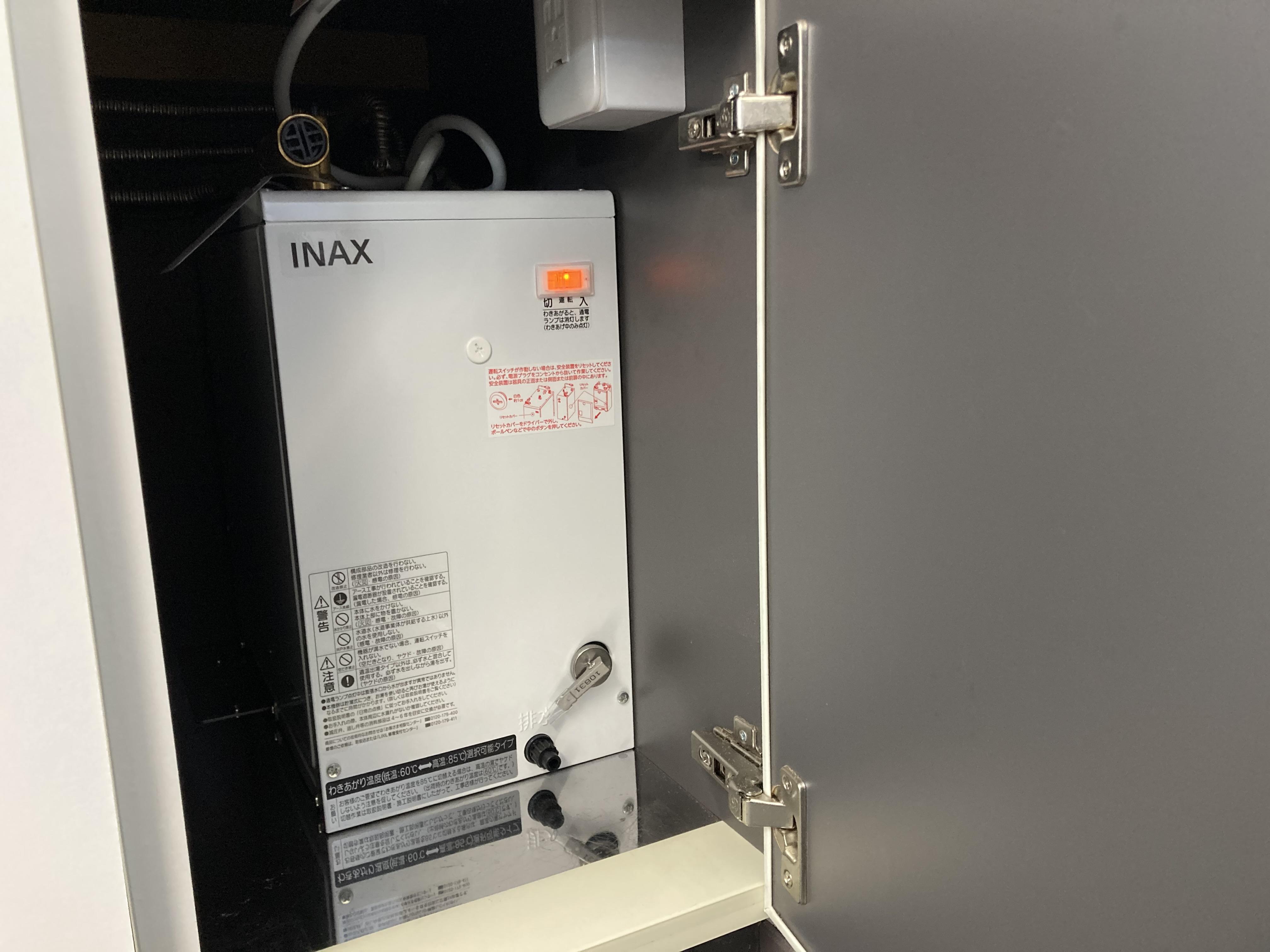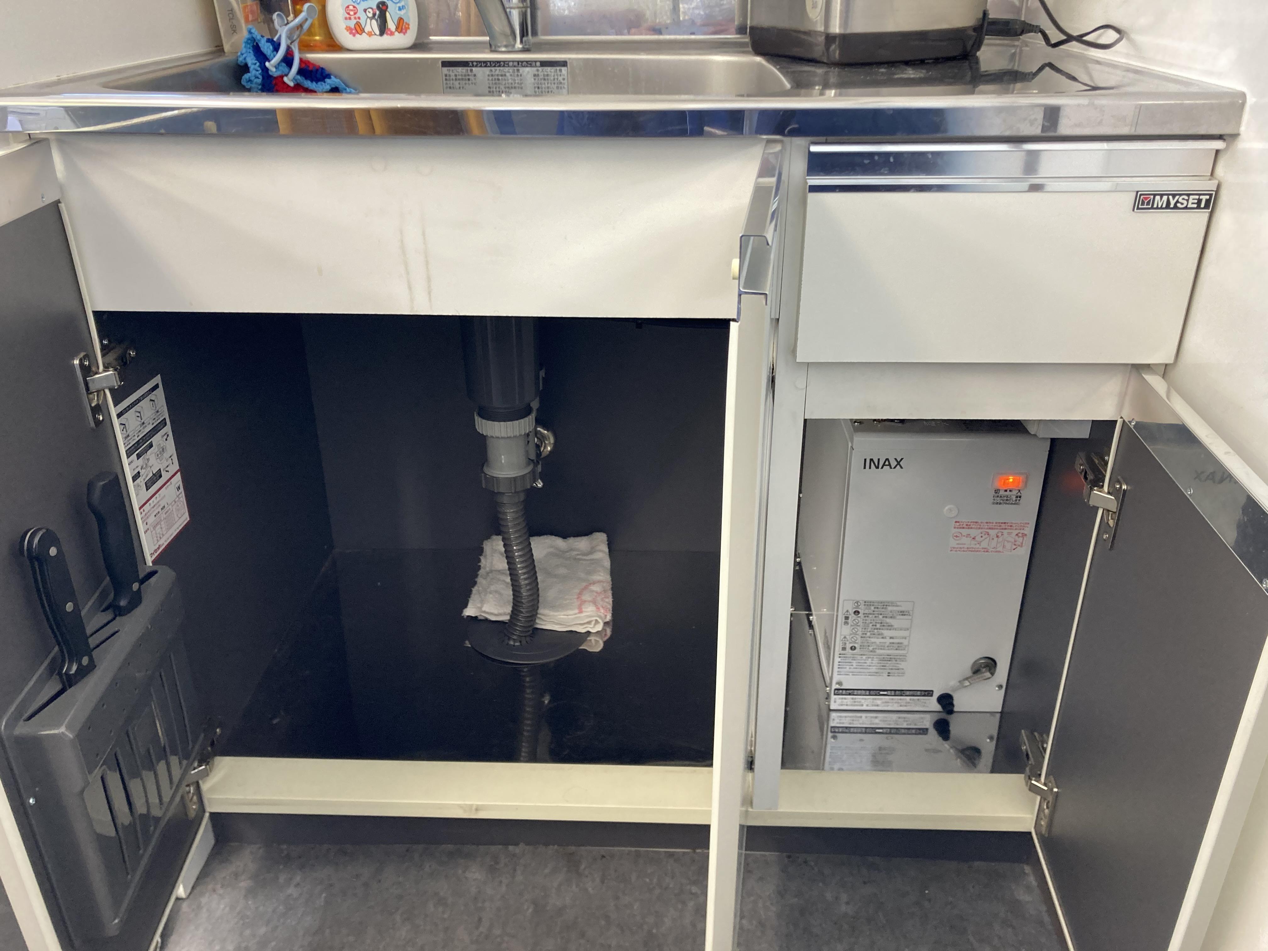 事務所給湯室のキッチンにはお湯の配管が来ておらず、蛇口をひねっても水しか出ませんでした。 キッチン内部に小型の電気式温水器を後付けすることで寒い冬でも瞬時に出湯が可能になります(^O^) お湯の配管を新たに工事する必要が無く容易に施工が可能です。水しか出ないキッチン・洗面台がございましたら検討してみて下さい(^_^)