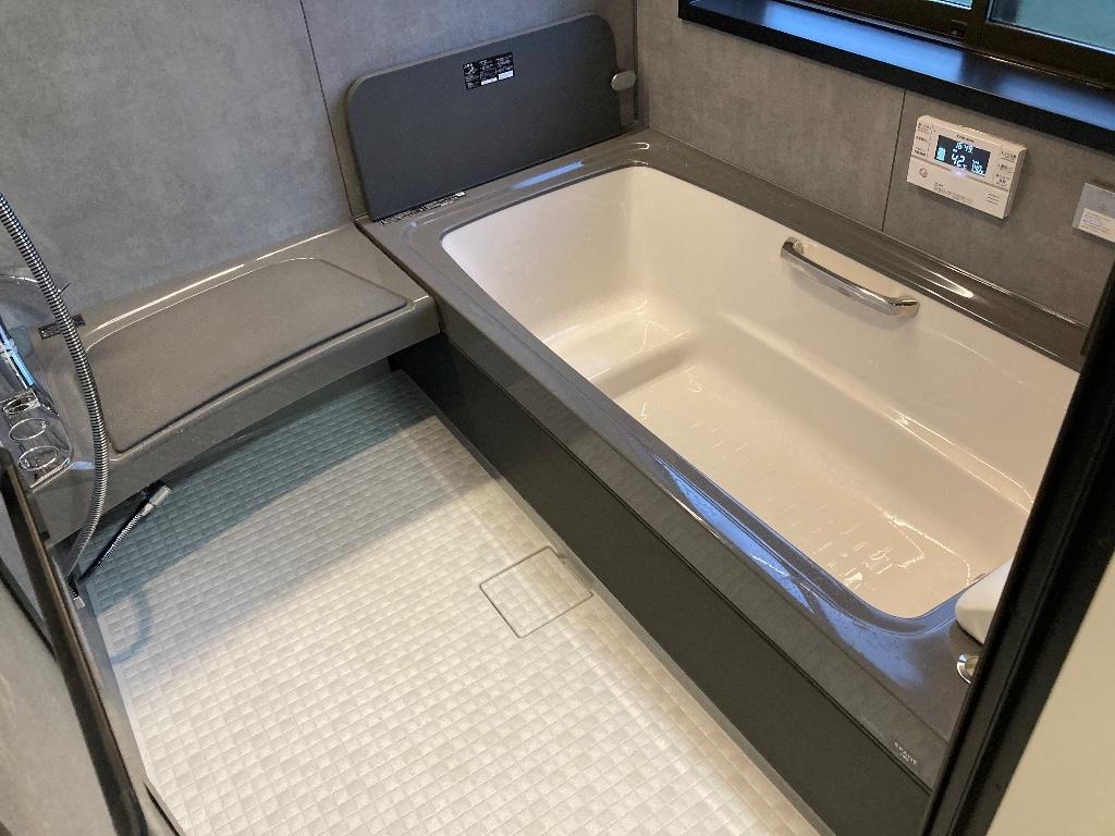 ピンクグレーのかわいいお風呂から LIXILスパージュのグレーシックな かっこいいお色へリフォーム。 さらにスパージュには肩湯がついており ゆっくりお風呂に浸かることができます。