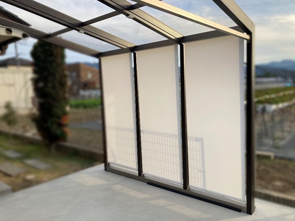 LIXILココマを使ったエクステリアリフォームです。 ココマのサイドスルータイプなので 正面からの視界を遮ることができます。 横は風通しがいいので屋根つきの庭としても活用できます。 洗濯物を干すためのフックも取りつけ、 天井にもカーテンがあるので日差しを遮り お茶などを楽しむこともできる、人気のガーデンルームです。