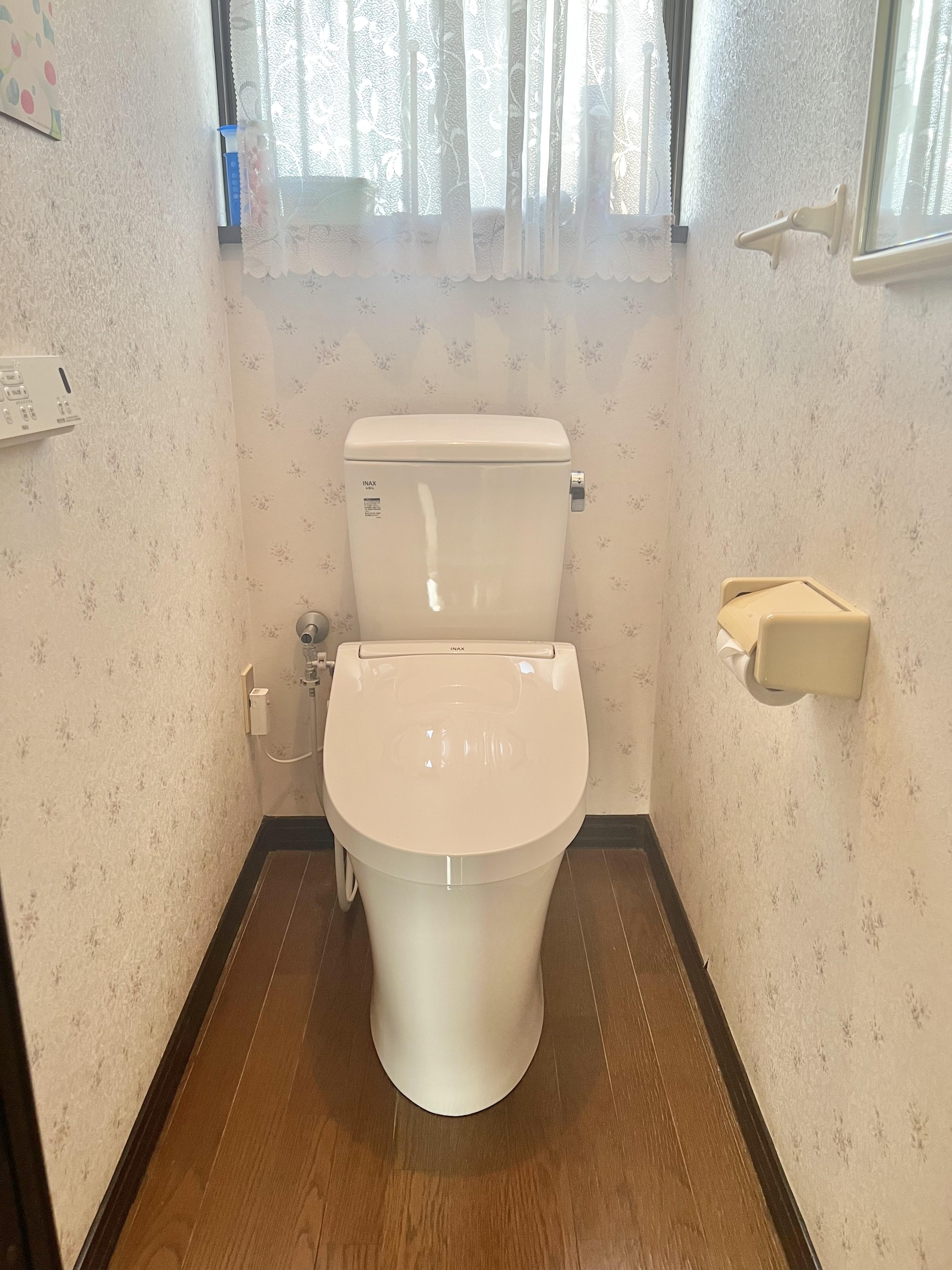 半日で工事も終わるので手軽にスッキリきれいなトイレに早変わり(^^) 壁紙などは今回は変えていないので元の壁紙に合わせてアメージュを採用しました。 お孫様たちが遊びにくる際にキレイなトイレになっていて喜んでいるそうです。