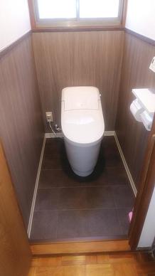 【トイレリフォーム】(中央市) プレアスのトイレでスッキリとした印象のタンクレストイレへ