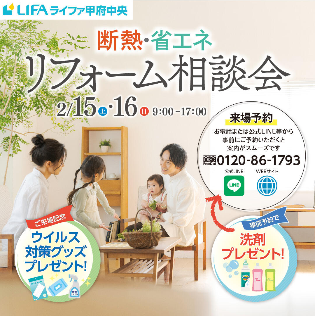 ライファ甲府中央では、断熱・省エネリフォーム相談会を開催します!