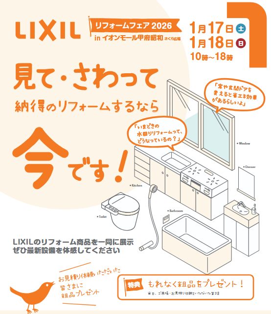 イオンモール甲府昭和 さくら広場にて、"体感型リフォームイベント"を開催します!!