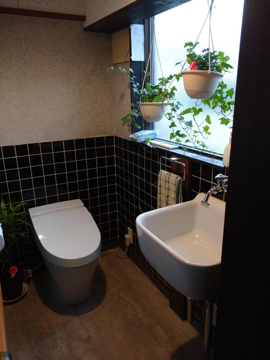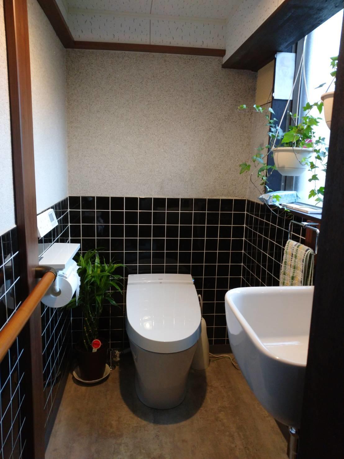 和式トイレから洋式トイレへ取替工事をしました。 トイレと洗面の間に扉がありましたが、扉をなくしてトイレと洗面と一緒の空間にしました。